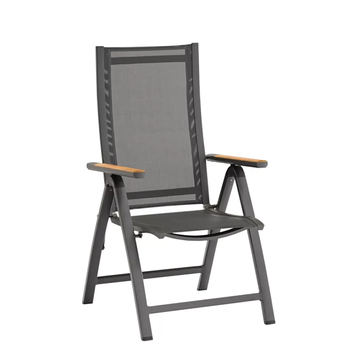 Klappbar und somit platzsparend, eignet sich der Sessel ideal für flexible Nutzungsmöglichkeiten, sei es auf der Terrasse, im Garten oder auf dem Balkon. Die Farbnuancen in Carbon Grey und Graphit setzen dezente Akzente und lassen sich leicht mit anderen Möbelstücken kombinieren.