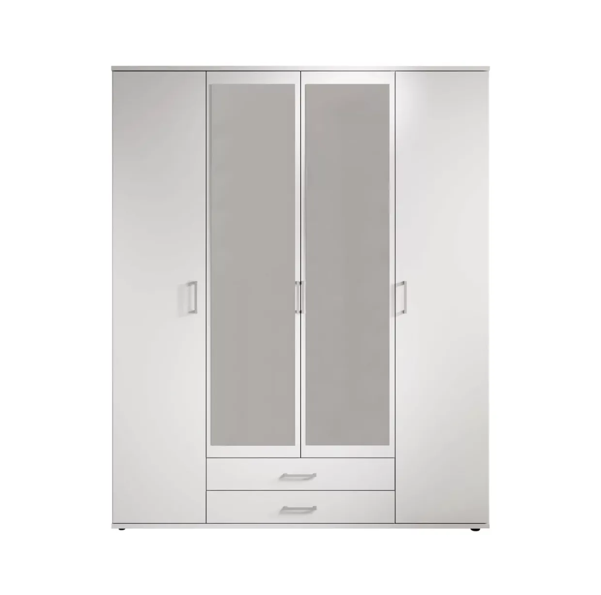KARL Kleiderschr. 4-trg Weiß / Weiß m.Spiegel BHT ca. 159x196x54 cm