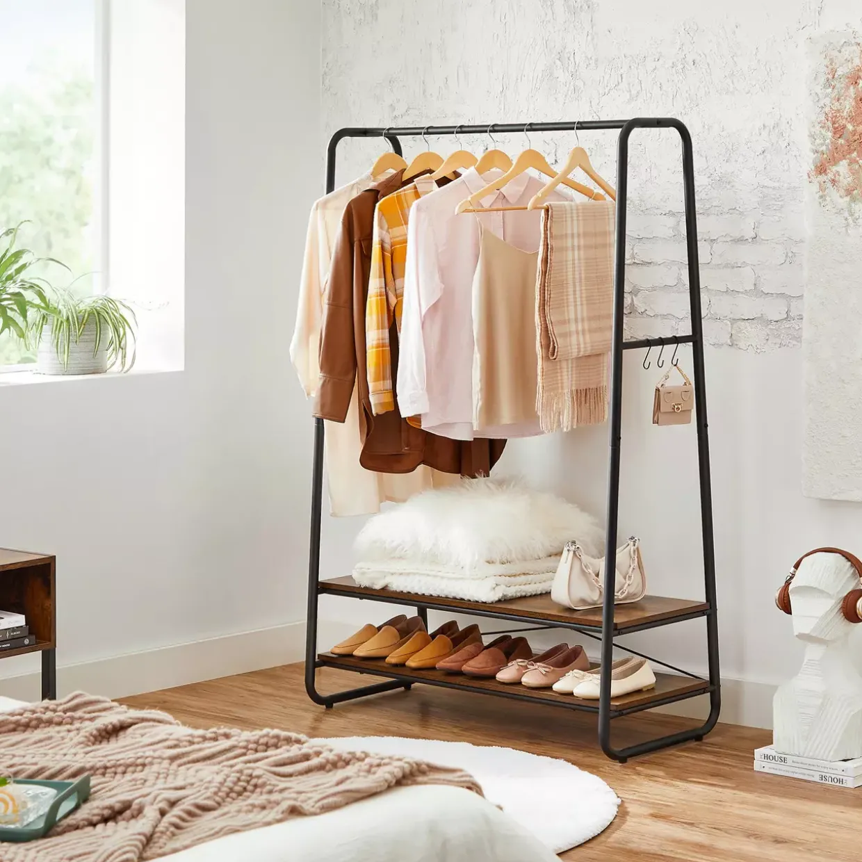 Mit seiner durchdachten Bauweise bietet der Kleiderständer ausreichend Platz für Ihre Garderobe, ohne dabei aufdringlich zu wirken. Er ist nicht nur eine Aufbewahrungslösung, sondern auch ein stilvolles Accessoire, das Ihren Raum aufwertet. Die Balance zwischen Funktion und Design ist perfekt gelungen.