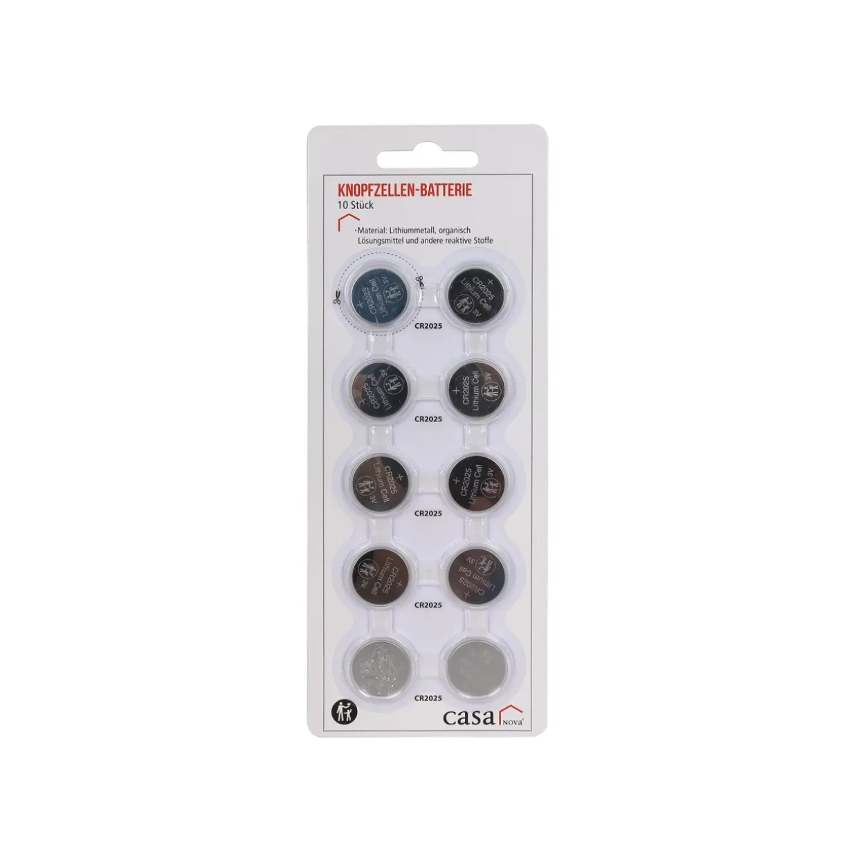 bestehend aus: Knopfzelle 10 Stück Packung CR2025-3V