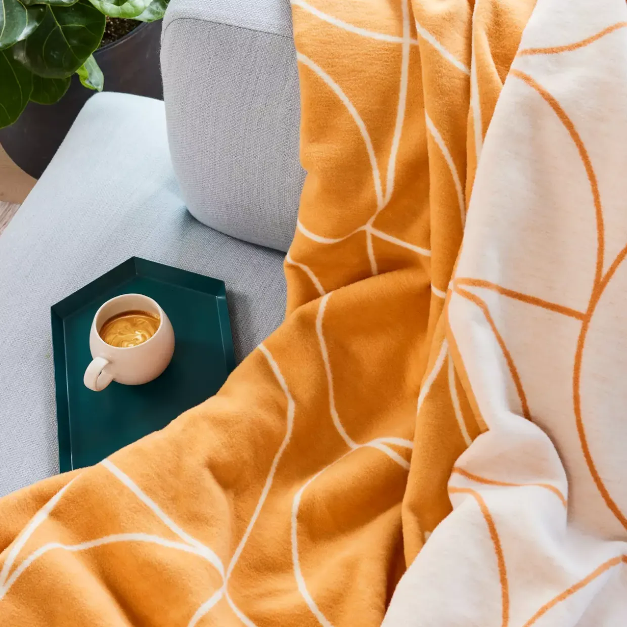 gesäumt 100% Baumwolle Größe: 140x200cm Farbton: 200 orange / wollweiß offizielles Gütesiegel: GOTS Gewebeart: Jaquard Material: Textil Stil: Loft Textilart: Baumwolle Zertifikate: Ökotex – Standard 100 / Ökotex – Made in Green / GOTS Set: nein bestehend aus: 1 Decke Faseranteile: Baumwolle 100% Saison: Ganzjährig Flächengewicht: 320 g/m² Form: rechteckig nicht bügeln trocknergeeignet bei niedriger Temperatur Maschinenwäsche bis 30°C Wollwaschprogramm nicht bleichen Feinwäsche schonend reinigen mit Perchlorethylen Maschinenwäsche bis 30°C schonend Highlights