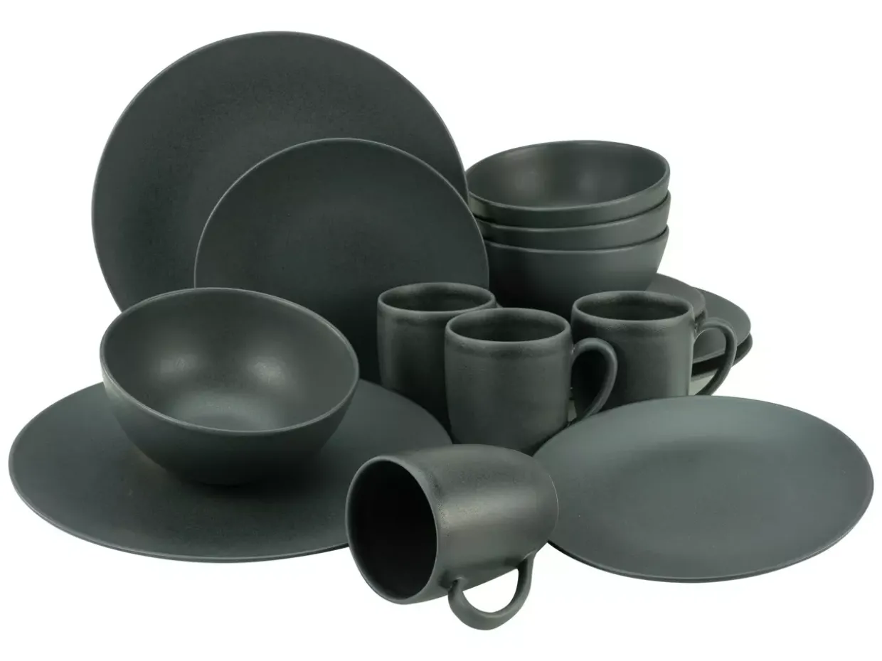 Schwarze Eleganz trifft auf modernes Design in diesem Kombiservice aus Steinzeug. Mit seiner runden Form und der matten Oberfläche fügt sich das Set harmonisch in jedes zeitgemäße Ambiente ein. Die Soft-Touch-Serie besticht durch ihre kratzunempfindliche Beschaffenheit, die eine langanhaltende Nutzung verspricht.