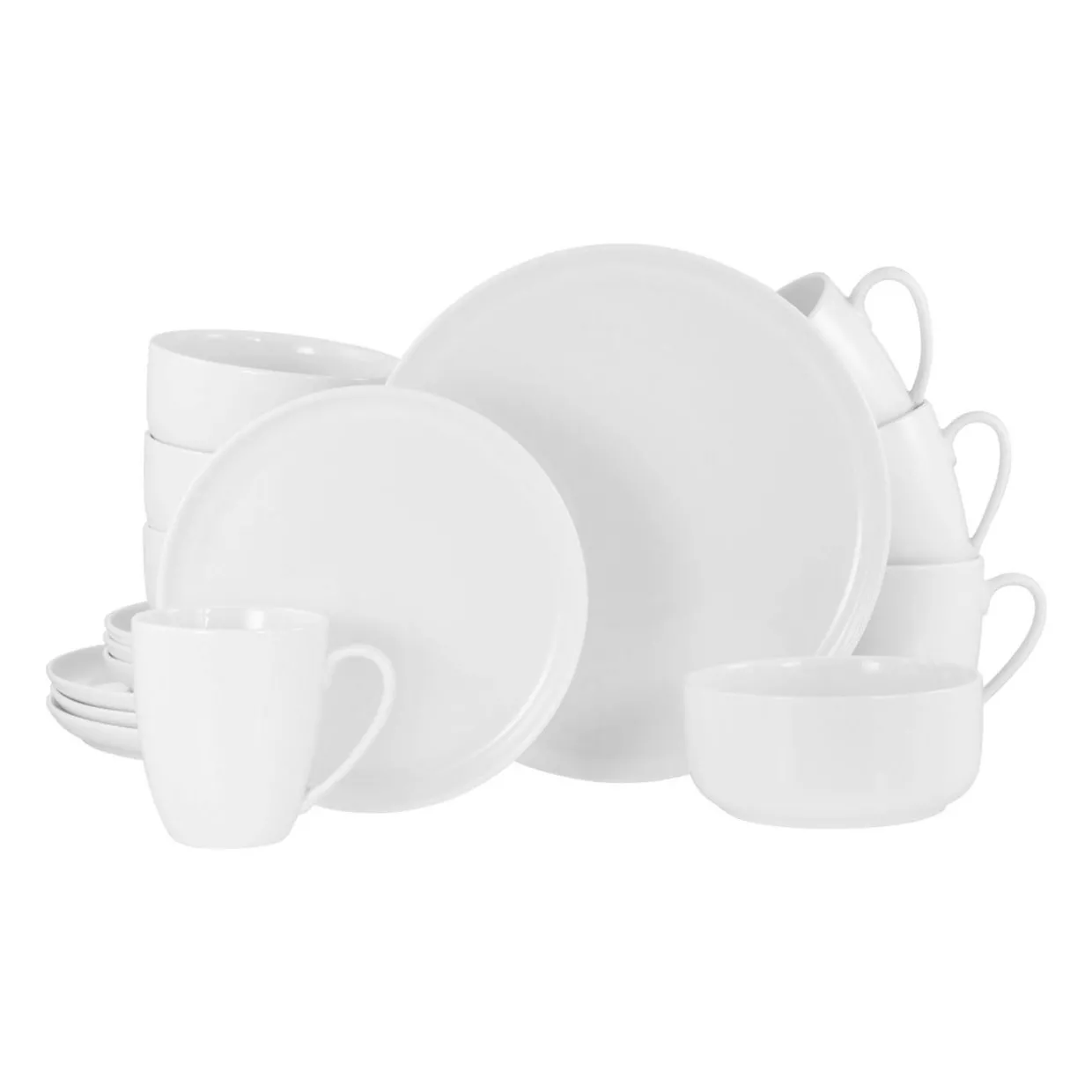 Eleganz trifft Funktionalität: Dieses Kombiservice im skandinavischen Stil vereint zeitlose Schönheit mit modernem Design. Die vierteilige Kollektion in strahlendem Weiß bringt eine klare und frische Ästhetik auf Ihren Tisch. Gefertigt aus hochwertigem Porzellan, strahlt das Geschirr mit seiner glänzenden und glasierten Oberfläche eine besondere Raffinesse aus.Mit einem 16-teiligen Set sind Sie bestens für jede Gelegenheit gerüstet – sei es das gemütliche Frühstück oder ein elegantes Abendessen mit Freunden. Die schlichte, unifarbene Gestaltung sorgt dabei für eine ansprechende und dennoch zurückhaltende Tischdekoration, die sich harmonisch in jede Umgebung einfügt.Besonders geschätzt wird die Alltagstauglichkeit dieses Kombiservices. Es ist nicht nur lebensmittelecht, sondern auch mikrowellen- und spülmaschinengeeignet, was den Umgang im täglichen Gebrauch erleichtert. Zudem ist das Porzellan BPA-frei sowie frei von PTFE und PFOA, wodurch es höchsten Sicherheitsstandards entspricht.Diese Kombination aus Ästhetik, Funktionalität und Sicherheit macht das Kombiservice zu einem idealen Begleiter für den modernen Haushalt. Genießen Sie die Momente des Beisammenseins mit einem Geschirr, das sowohl schlicht als auch beeindruckend ist, und erleben Sie die Symbiose aus skandinavischem Design und langlebiger Qualität.