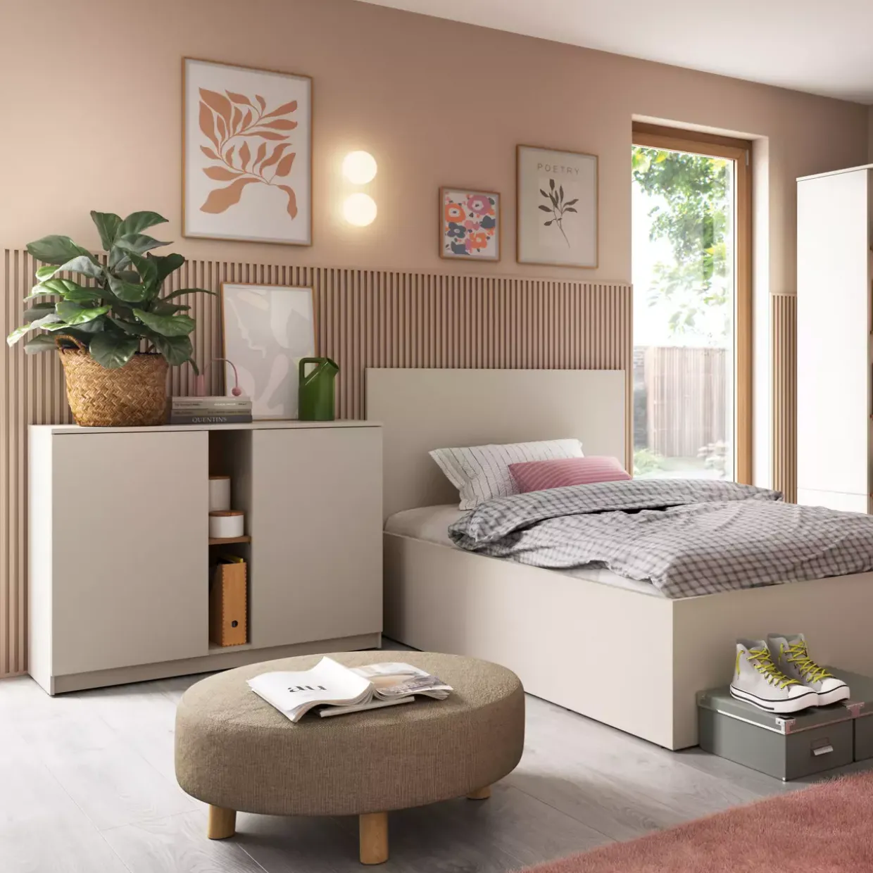 Ein griffloses System verleiht der Kommode FANO eine elegante und moderne Ästhetik, die sich nahtlos in zeitgemäße Wohnräume einfügt. Der Mix aus Eiche Karmel und Kaschmir sorgt für ein harmonisches Farbenspiel, das jedem Raum Wärme und Stil verleiht. Gefertigt aus einer Kombination von Holzwerkstoff und hochwertigem Kunststoff, bietet diese Kommode nicht nur Stabilität, sondern auch eine langlebige Nutzung.