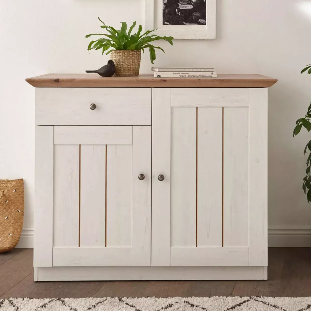 Der Stil Cottage verleiht der Kommode Basel einen charmanten und einladenden Charakter. Anderson Pine gepaart mit Abs.Artisan präsentiert sich in einer harmonischen Farbgebung, die für eine warme Atmosphäre sorgt. Die Kommode ist aus hochwertigem Holzwerkstoff gefertigt und vereint Robustheit mit einer natürlichen Ästhetik.