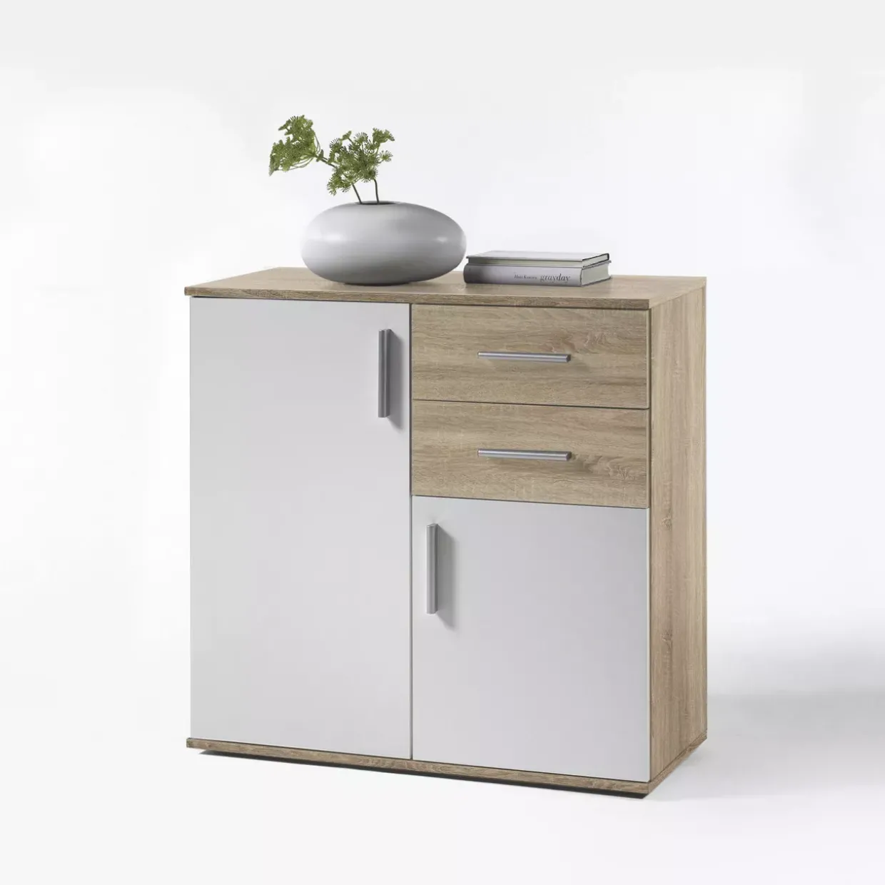 Farbton: Korpus Eiche sonoma / Front Eiche sonoma / Front Weiß / Griffe alufarbig