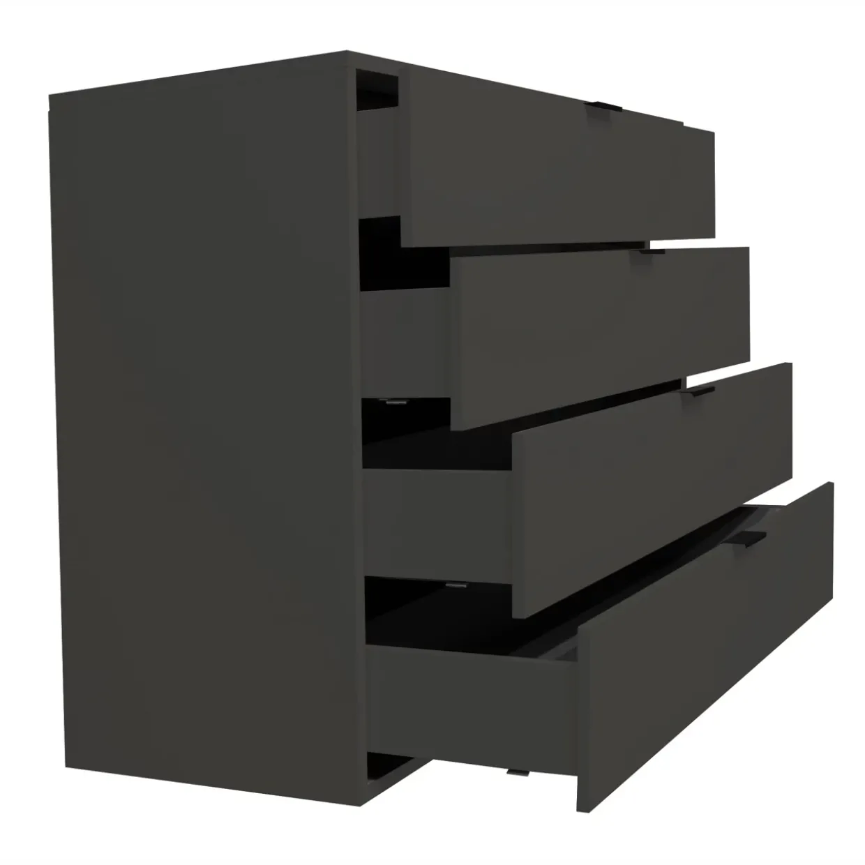 Anthrazit matt lackiert, die Kommode Bonnie vereint modernen Stil mit funktionalem Design. Eckige Formen und klare Linien zeichnen dieses Möbelstück aus, das sowohl in minimalistischen als auch in eleganten Interieurs seinen Platz findet. Die Kombination aus Holzwerkstoff und Aluguss verleiht der Kommode nicht nur Stabilität, sondern auch eine edle Optik.