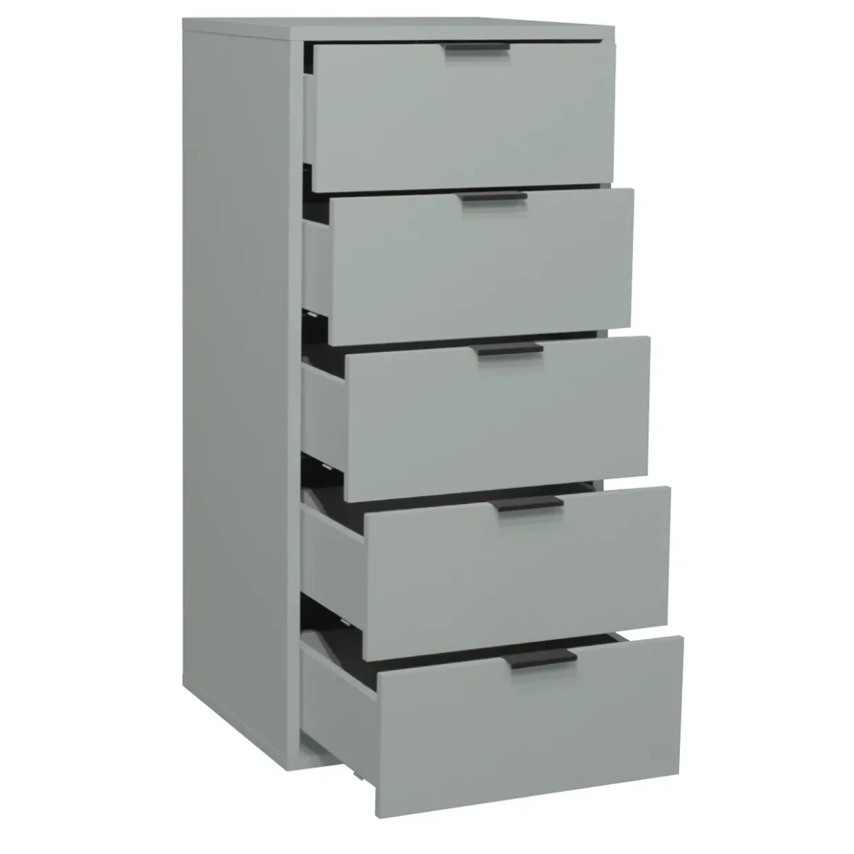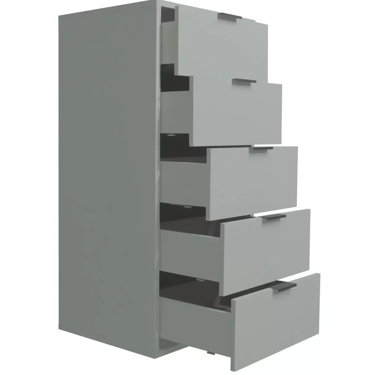 Eine Besonderheit dieser Kommode ist das Soft-Close-System, das ein sanftes und geräuschloses Schließen der Schubfächer ermöglicht. Die Dickkante sorgt zusätzlich für eine langlebige und robuste Kante, die Stößen standhält.