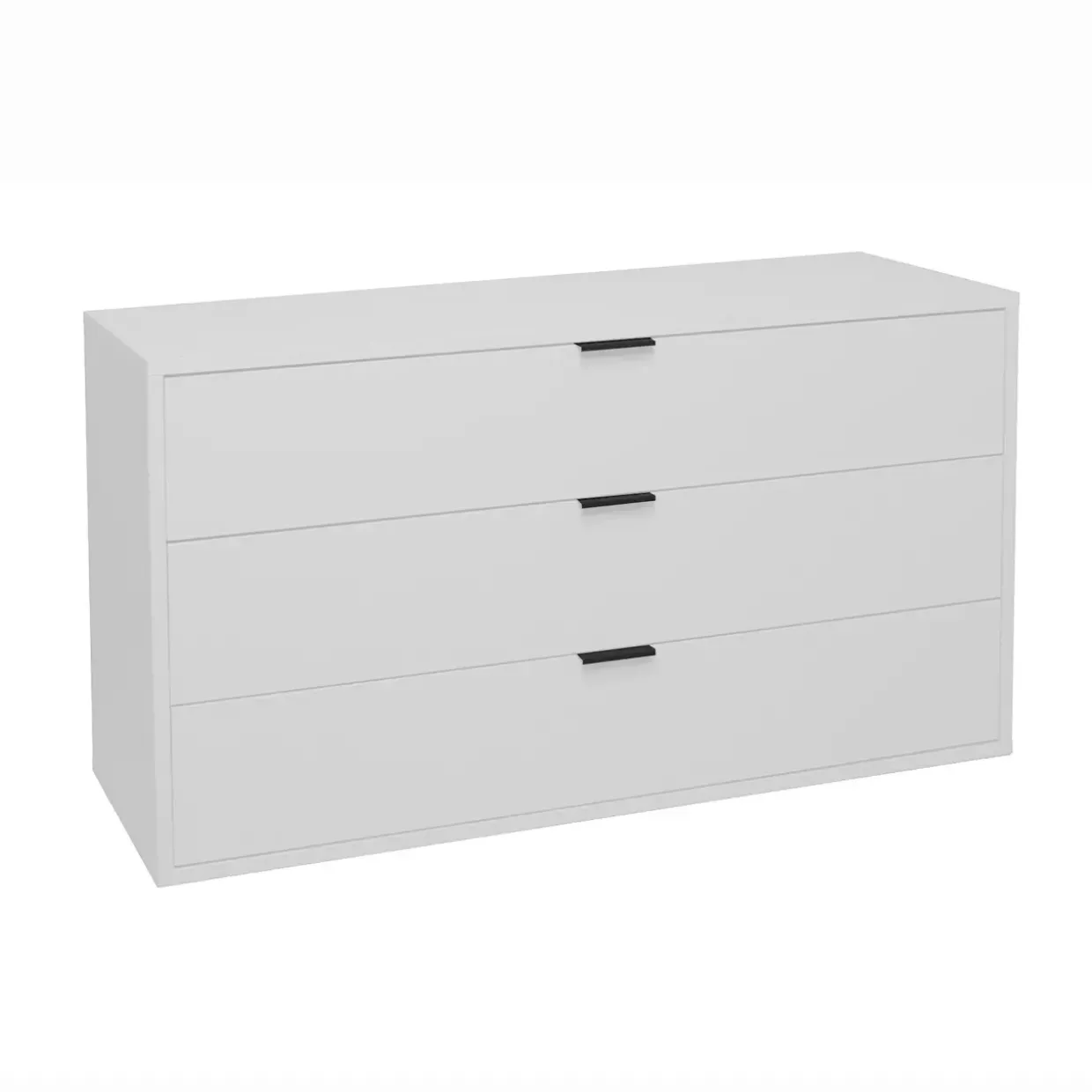 Eleganz trifft auf Funktionalität mit dieser modernen Kommode, die in einem stilvollen Mix aus ice white matt lack und schwarzgrau erstrahlt. Drei großzügige Schubladen, die dank Unterflurauszügen sanft gleiten, bieten ausreichend Stauraum für Ihre Habseligkeiten. Ein besonderes Highlight ist das Soft-Close-System, das ein leises und sanftes Schließen der Schubladen garantiert.