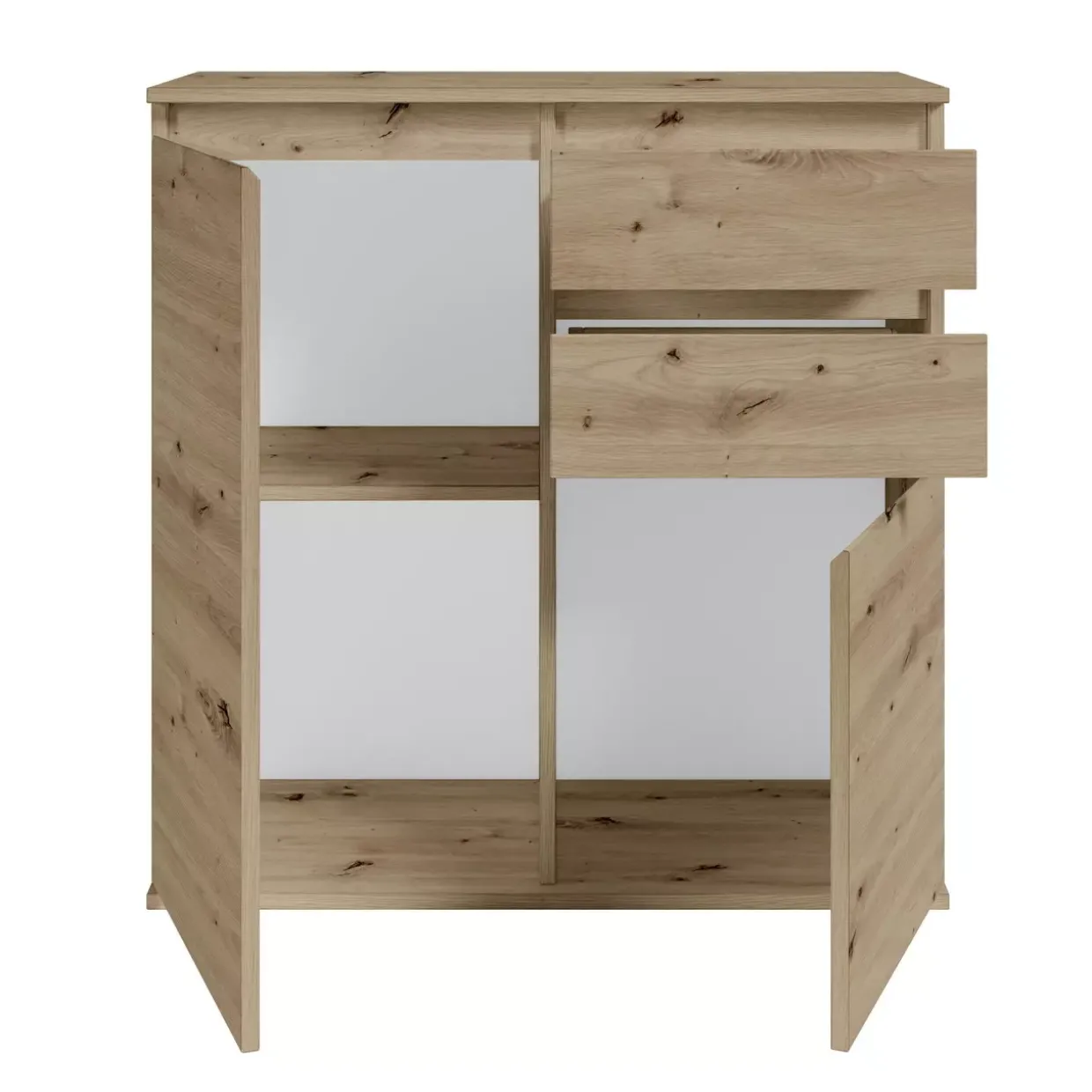 Holzwerkstoff in seiner schönsten Form – die Kommode 2 präsentiert sich in einem modernen Stil, der jedes Zuhause aufwertet. Mit ihrer ansprechenden Artisan-Farbe fügt sie sich nahtlos in verschiedene Wohnkonzepte ein und sorgt für eine warme Atmosphäre. Als Beimöbel lässt sie sich vielseitig einsetzen, ob im Wohnbereich, Schlafzimmer oder Flur.