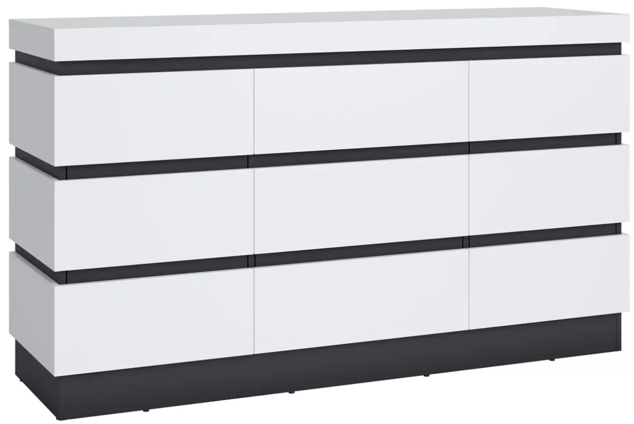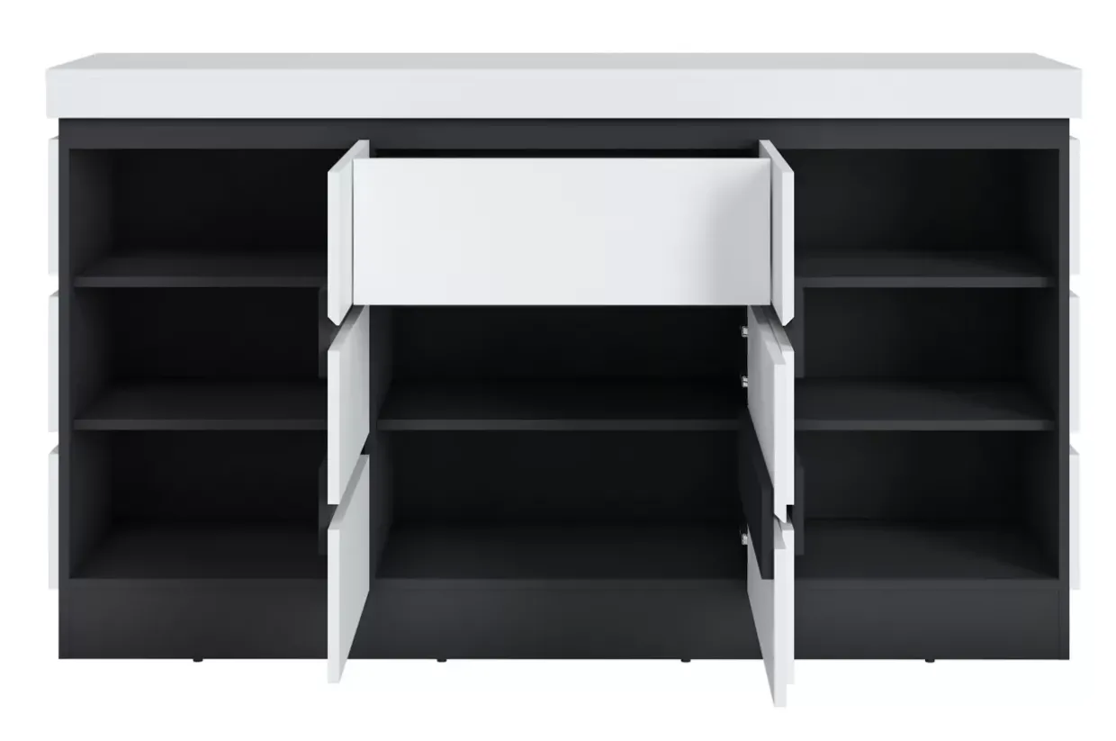 Modernes Design trifft auf hochwertige Materialien – die Campania Kommode überzeugt durch ihre zeitlose Eleganz. Die Kombination aus alpinweiß und anthrazit verleiht diesem Möbelstück eine stilvolle und zugleich dezente Optik, die sich nahtlos in verschiedene Wohnräume einfügt.