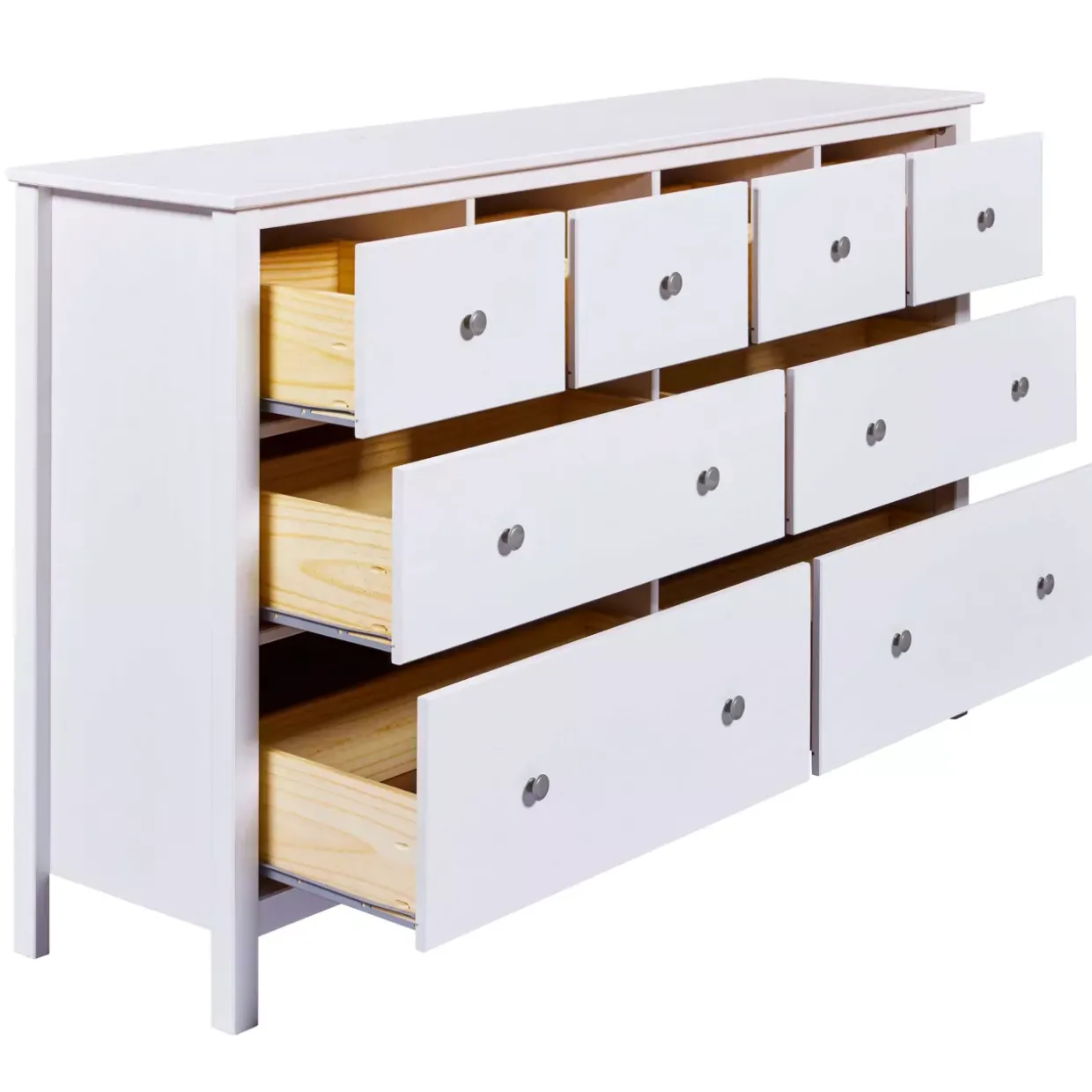 Ein zentraler Punkt ist die funktionale Vielseitigkeit. Die Kommode verfügt über großzügigen Stauraum, der es ermöglicht, Kleidung, Bücher oder andere persönliche Gegenstände ordentlich zu verstauen. Die Schubladen gleiten sanft und lassen sich mühelos öffnen und schließen, was den täglichen Gebrauch besonders angenehm gestaltet.