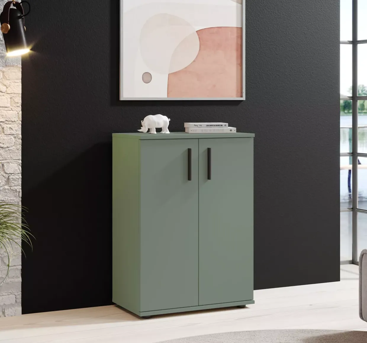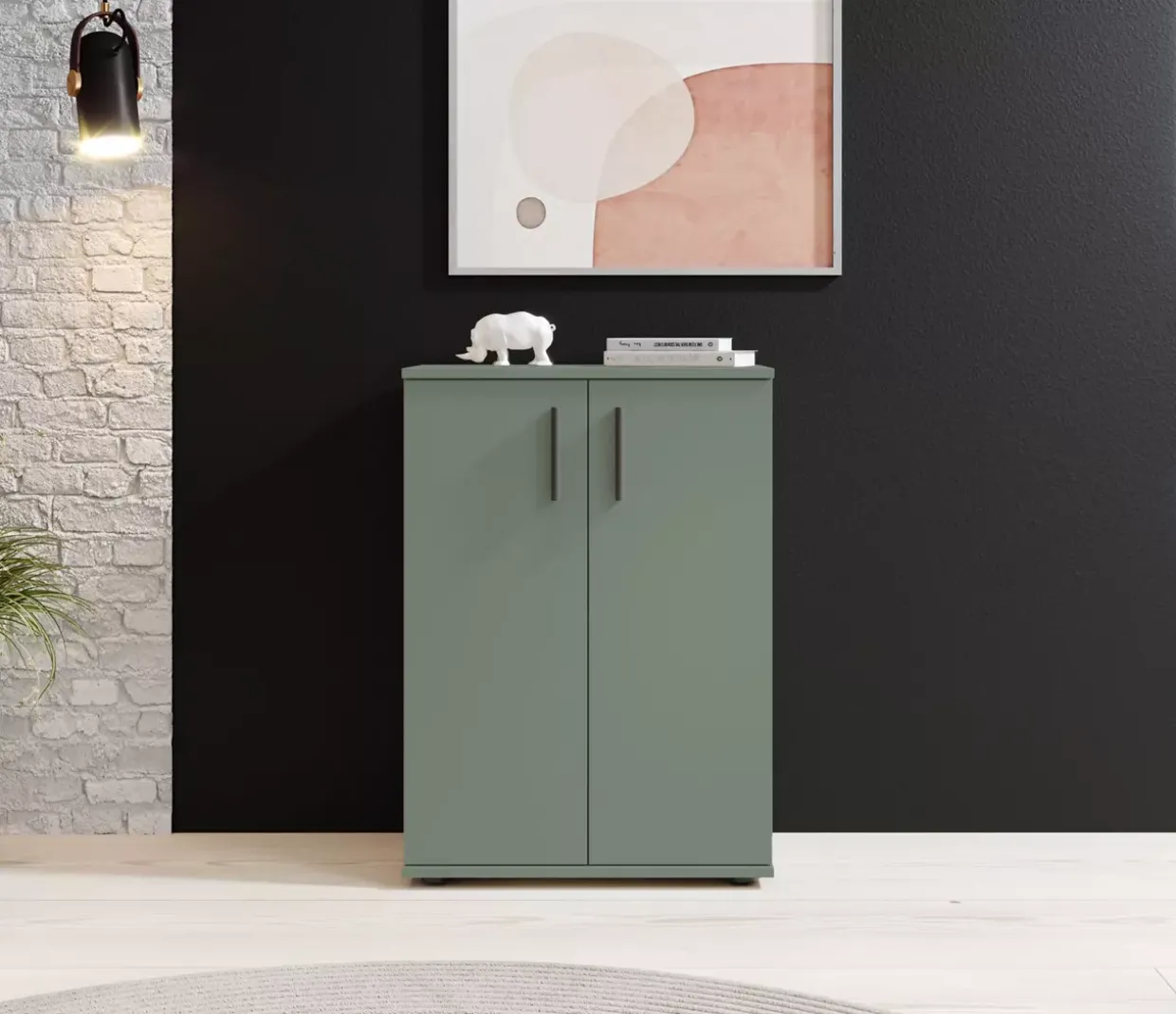 Sanfte Salbei-Töne bringen eine beruhigende Atmosphäre in Ihr Zuhause. Diese Kommode im Scandi-Stil vereint Funktionalität und Ästhetik auf harmonische Weise. Hergestellt aus hochwertigem Holzwerkstoff, bietet sie sowohl Langlebigkeit als auch eine natürliche Optik, die sich nahtlos in unterschiedliche Einrichtungsstile einfügt.