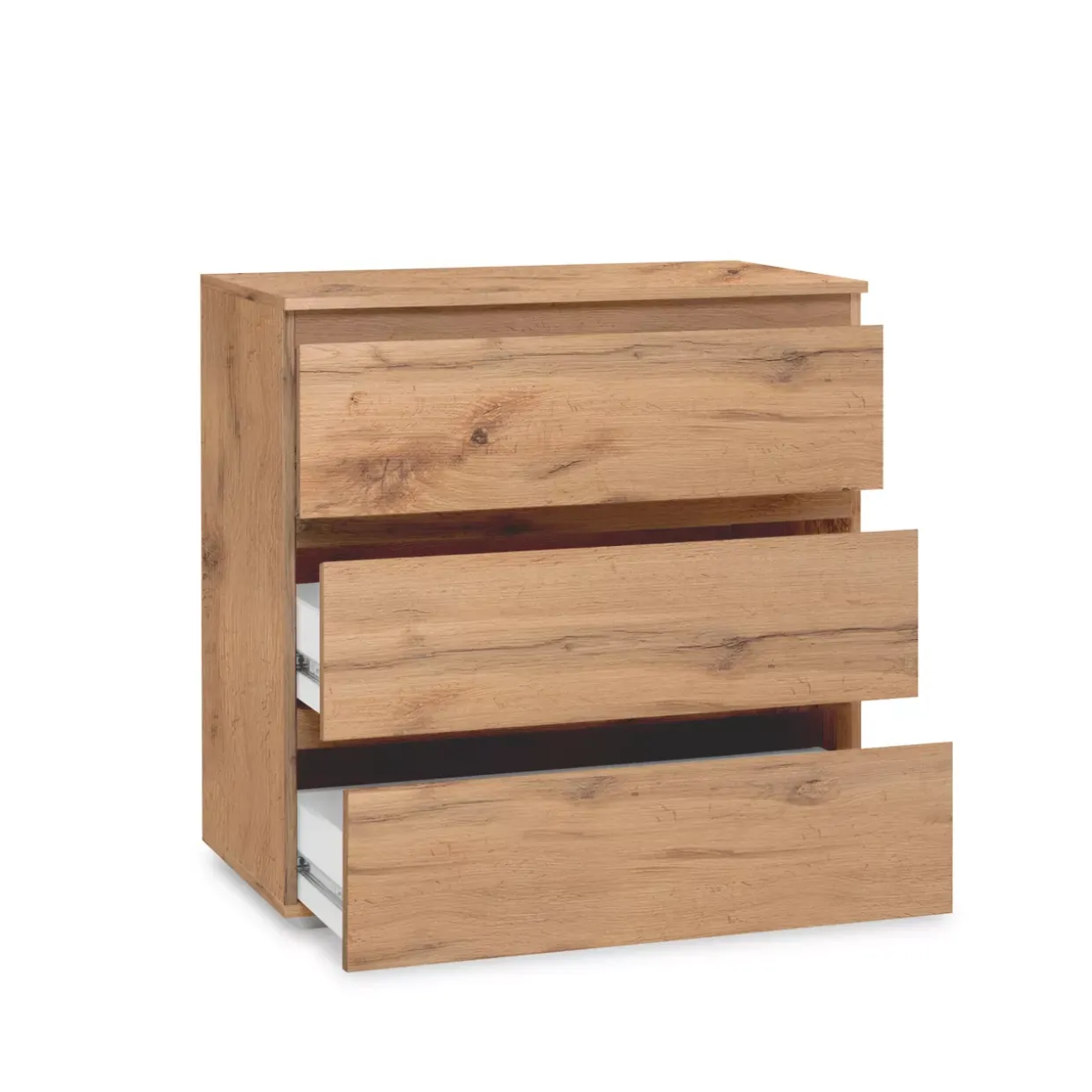 Die Kommode Image verbindet modernes Design mit funktionaler Eleganz. Mit einer stilvollen Farbkombination aus Honigeiche und alufarbigen Akzenten fügt sie sich nahtlos in zeitgemäße Wohnräume ein. Drei geräumige Fächer bieten ausreichend Stauraum für diverse Bedürfnisse und helfen, Ordnung zu schaffen.