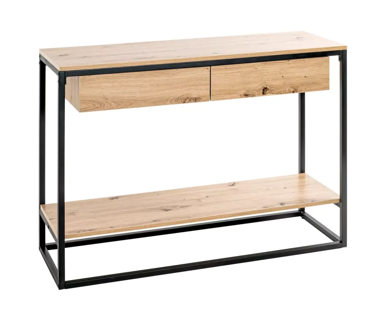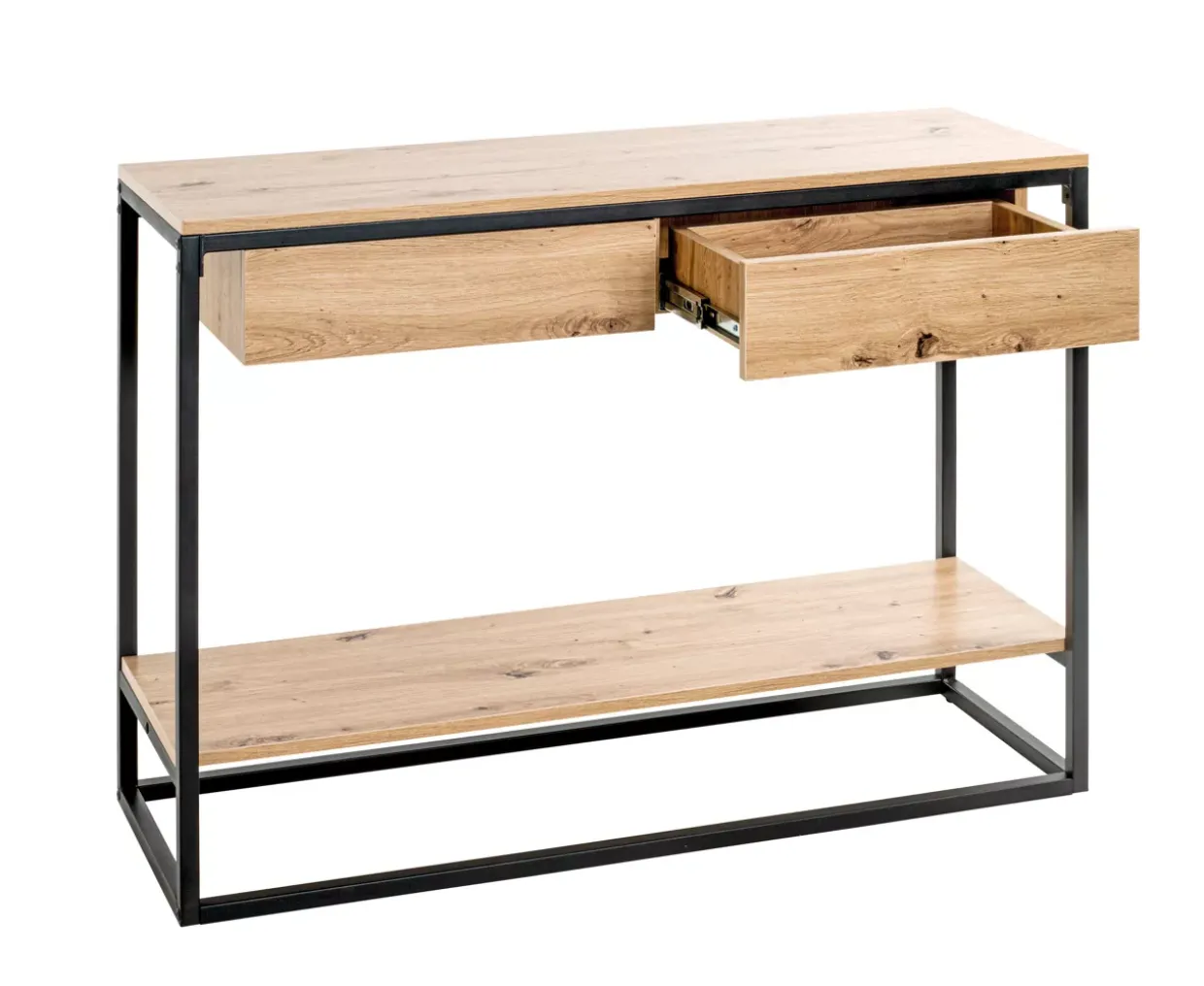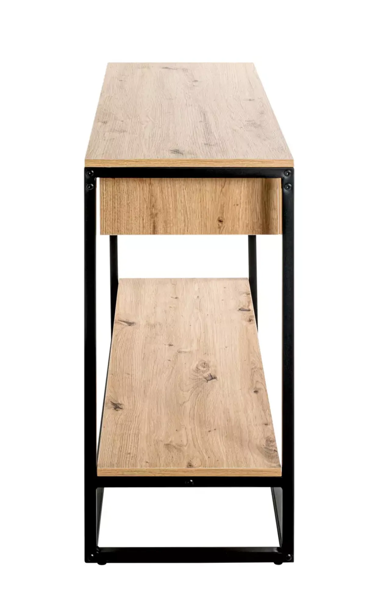 Eiche und Metall vereinen sich in der modernen Bergen Konsole zu einer stilvollen Symbiose. Dieses Möbelstück beeindruckt durch seine klare Linienführung und das ansprechende Design. Der Einsatz von Holzwerkstoff und Metall verleiht der Konsole nicht nur Stabilität, sondern auch eine zeitgemäße Eleganz, die sich nahtlos in verschiedene Wohnumgebungen einfügt.