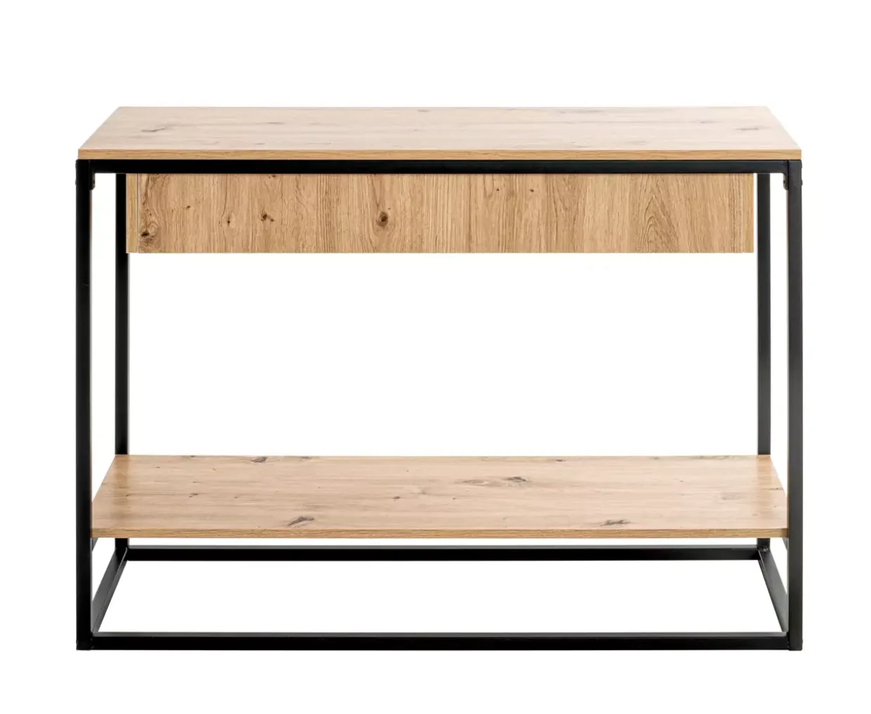 Quadratrohr-Füße tragen zur stabilen Struktur der Konsole bei und bieten eine solide Basis. Diese besondere Fußform unterstreicht den modernen Charakter des Möbels und sorgt gleichzeitig für eine harmonische Balance zwischen Funktionalität und Ästhetik. Die Bergen Konsole ist in verschiedenen Farbvarianten erhältlich, darunter klassische Eiche oder eine Kombination aus Eiche und Metall, die jedem Raum einen Hauch von Raffinesse verleihen.