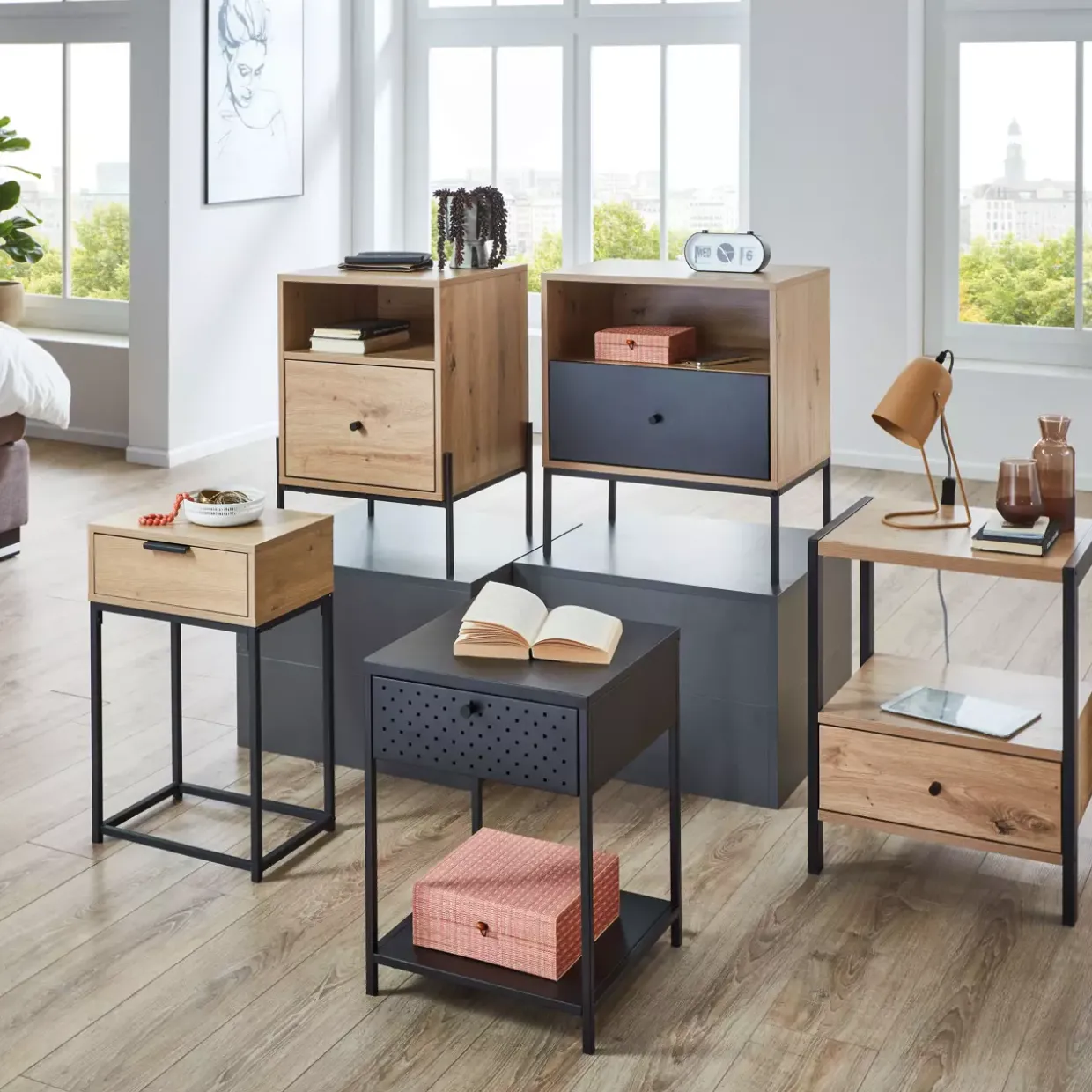 Farbton: Eiche / schwarz / Gestell schwarz / Füße schwarz / Schubkasten Eiche / Griffe schwarz