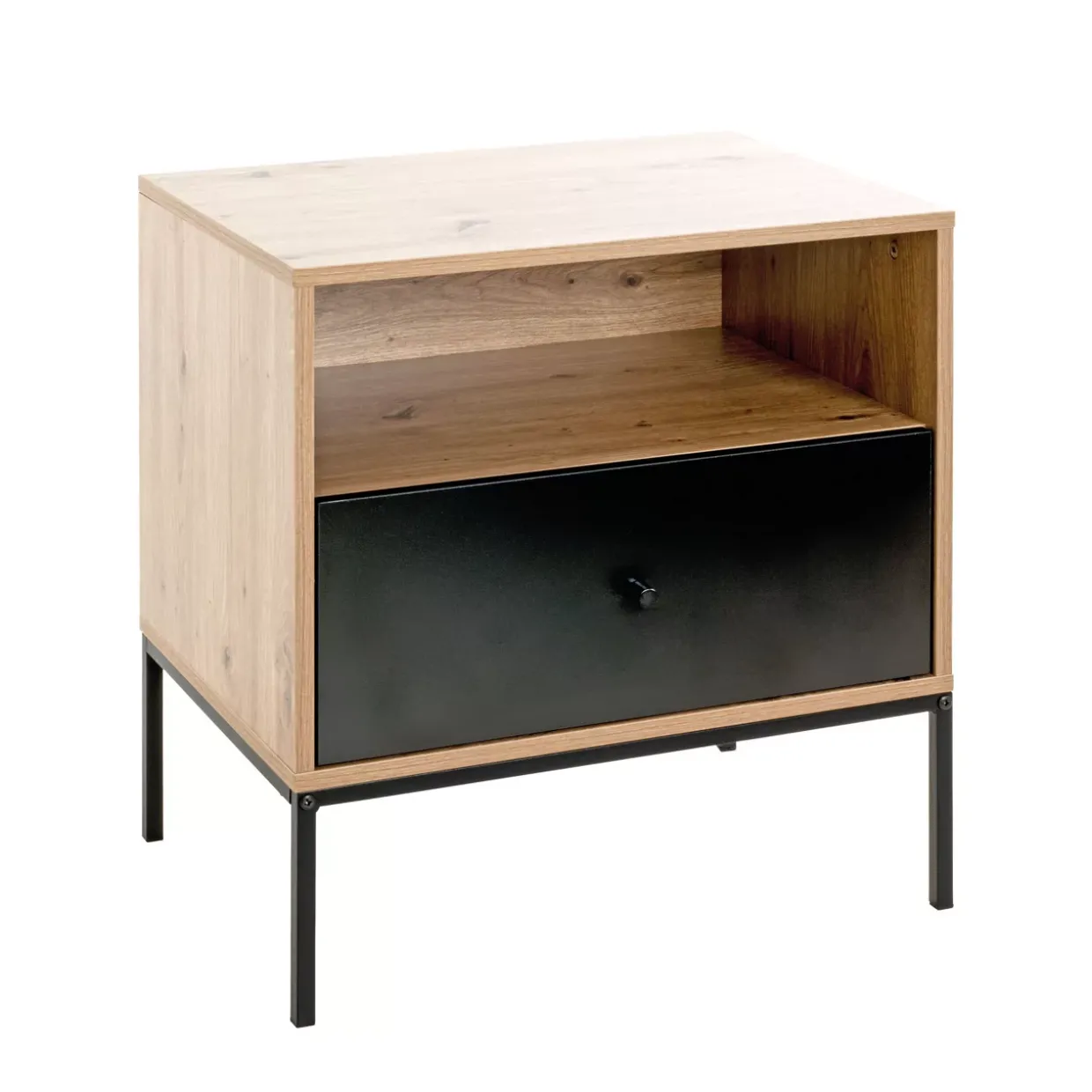 Farbton: Eiche / Korpus Eiche / Gestell schwarz / Füße schwarz / Front Eiche / Front schwarz / Griffe Schwarz