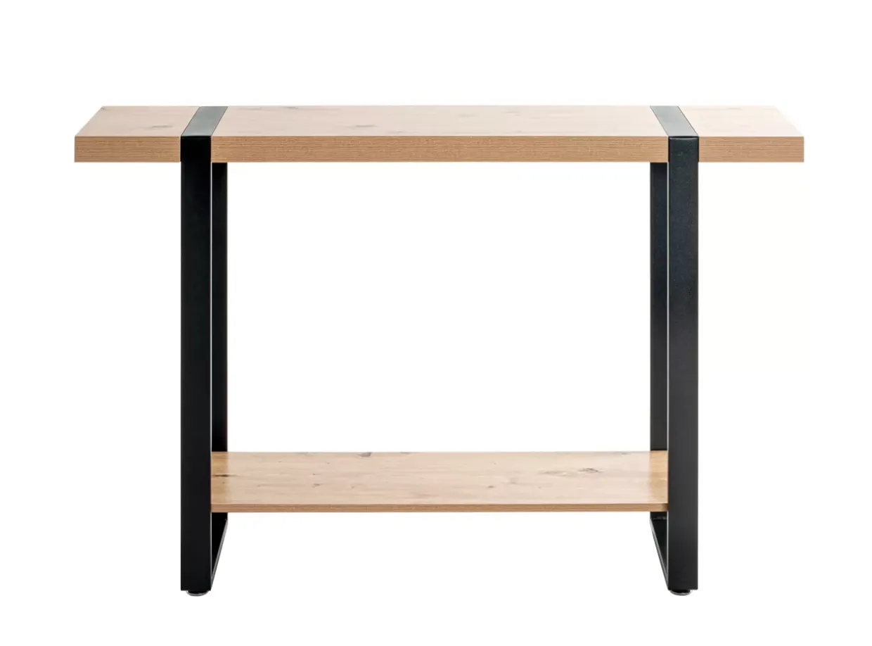 Ein weiteres Highlight ist die Verarbeitung aus hochwertigen Materialien. Holzwerkstoff und Metall sorgen für eine lange Lebensdauer und Stabilität, während die Eiche Nachbildung eine natürliche Optik schafft, die jedes Zuhause bereichert. Die Kombination aus modernen und natürlichen Elementen macht die Konsole zu einem Blickfang.