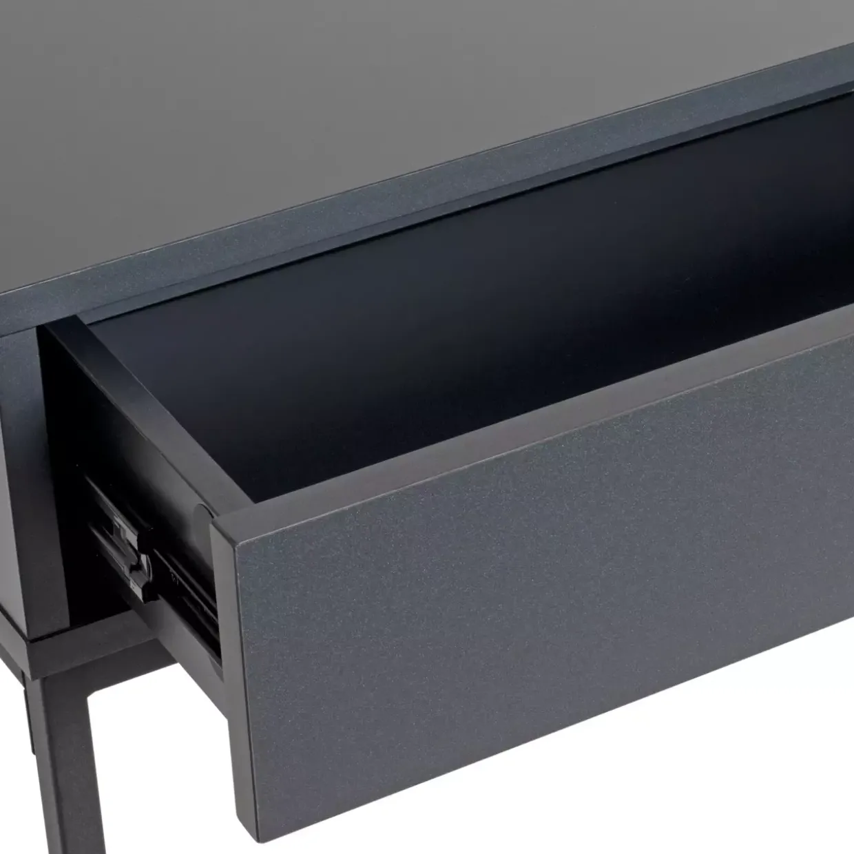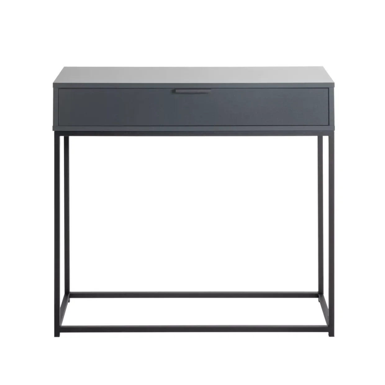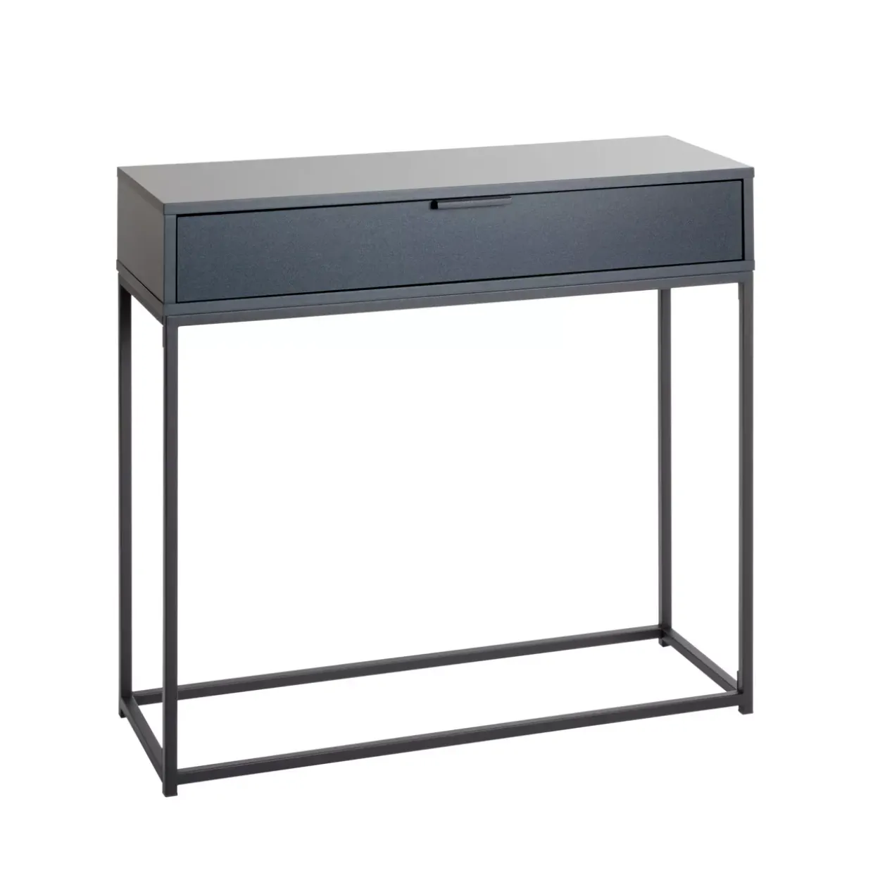 Ein stilvoller Loft-Look prägt den Charakter dieses Beistelltischs, der durch seine klare Linienführung besticht. Die Kombination aus Holzwerkstoff und schwarzem Stahl verleiht dem Möbelstück eine robuste und zugleich elegante Ausstrahlung. Eine Besonderheit ist der integrierte Schubkasten, der zusätzlichen Stauraum bietet und die Funktionalität des Tisches unterstreicht.