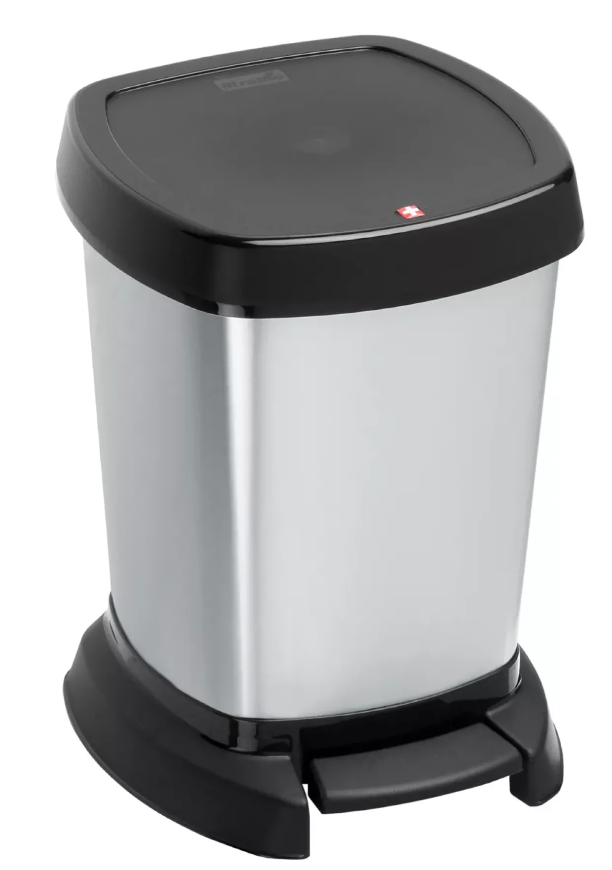Der schicke Kosmetikeimer PASO mit edler Aluminium-Ummantelung in aktuellen Trendfarben. Dank der robusten Konstruktion aus flexiblen Kunststoffen verbeult oder rostet er nicht, was gerade im Badezimmer ein Riesenvorteil ist. Und auf dem optimierten Oberflächenmaterial haben auch Fingerabdrücke kein leichtes Spiel. Das Pedalsorgt für einfaches Öffnen, der Dämpfer für sanftes und geräuschloses Schliessen.
