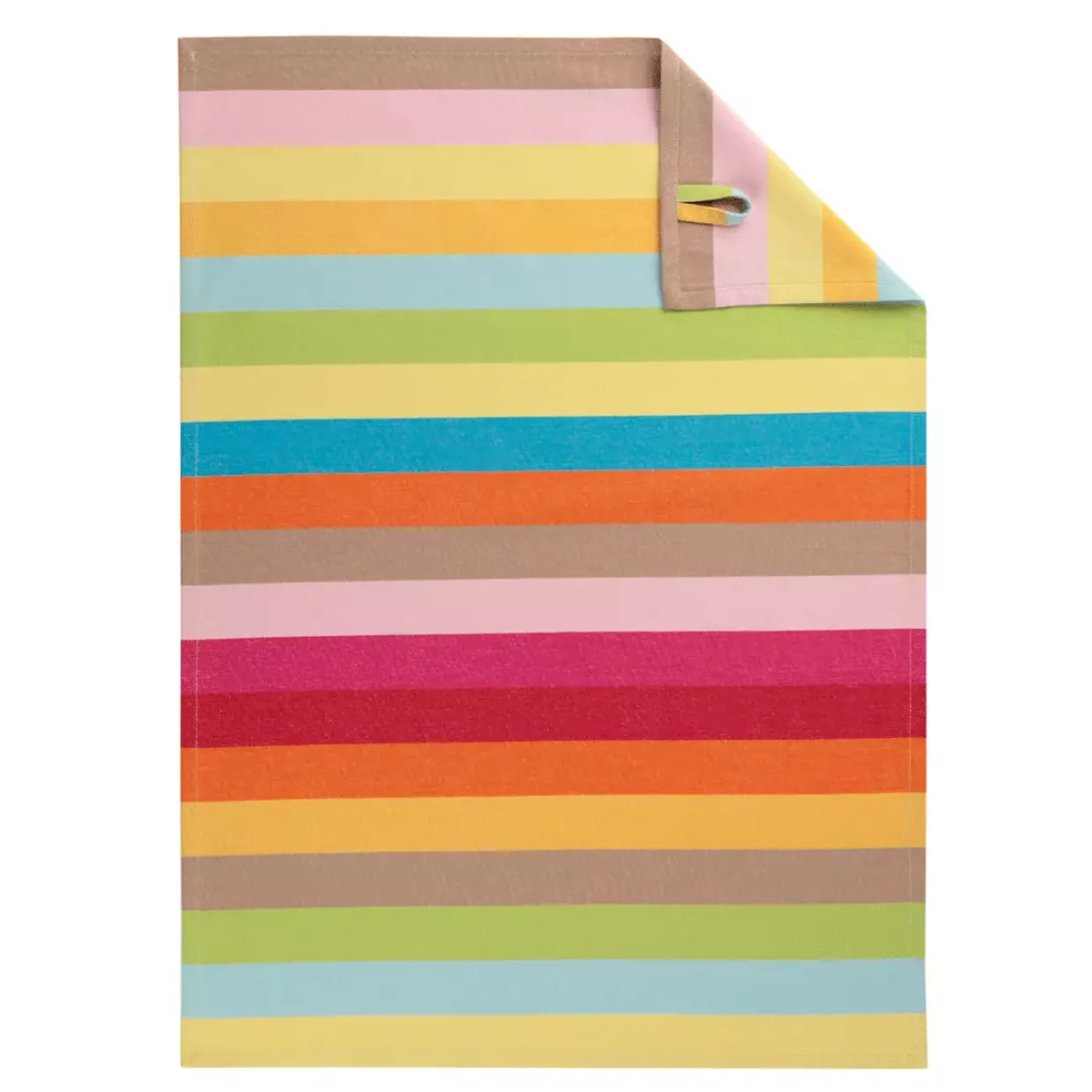 Rechteckig und modern präsentiert sich dieses Geschirrtuch, das Dank seines eleganten Stils in jeder Küche eine gute Figur macht. Die harmonische Multicolor-Gestaltung sorgt für einen frischen Akzent, der sich perfekt in verschiedene Einrichtungsstile einfügt. Ganzjährig einsetzbar, erfüllt es die Anforderungen an ein vielseitiges Küchentuch, das sowohl funktional als auch ästhetisch überzeugt.Gefertigt aus hochwertiger Naturfaser, bietet das Textil nicht nur eine angenehme Haptik, sondern auch eine nachhaltige Wahl für umweltbewusste Haushalte. Die Ökotex – Standard 100 Zertifizierung garantiert zudem, dass das Material auf Schadstoffe geprüft wurde und somit bedenkenlos verwendet werden kann.Auch in puncto Pflegeleichtigkeit setzt dieses Geschirrtuch Maßstäbe. Maschinenwaschbar bis 60°C bleibt es auch nach zahlreichen Waschgängen formstabil und farbecht. Die Trocknereignung bei niedriger Temperatur erleichtert den Alltag zusätzlich. Bügeln und Bleichen sind nicht erforderlich, was die Pflege noch unkomplizierter gestaltet. Die Möglichkeit zur chemischen Reinigung eröffnet weitere Optionen, um das Tuch stets in einwandfreiem Zustand zu halten.Dieses Geschirrtuch ist ein verlässlicher Begleiter in der Küche, der Funktionalität und modernes Design gekonnt miteinander verbindet.