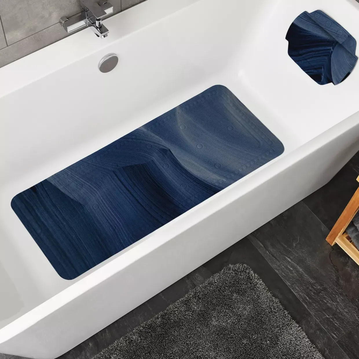 Ein Hauch von Luxus in rubinroter Eleganz verwandelt Ihr Badezimmer in eine Wohlfühloase. Diese moderne Wanneneinlage besticht durch ihr stilvolles Design und bietet gleichzeitig Komfort und Sicherheit. Gefertigt aus hochwertigem Kunststoff, vereint sie Langlebigkeit mit einer ansprechenden Optik.Der praktische Nutzen dieser Wanneneinlage wird durch einfache Pflege ergänzt. Sie kann bis zu 40°C schonend in der Maschine gewaschen werden, was die Reinigung mühelos gestaltet. Beachten Sie bitte, dass diese Einlage nicht gebleicht, gebügelt oder im Trockner getrocknet werden sollte. Diese Pflegehinweise unterstützen die Langlebigkeit und erhalten die brillante Farbe der Einlage.Ein weiterer Vorteil der Wanneneinlage ist die rutschfeste Oberfläche, die für zusätzliche Sicherheit sorgt. Gerade im Bad, wo Nässe und Glätte oft zusammenkommen, bietet sie einen stabilen Halt. Durch die Verwendung von Kunststoff bleibt die Einlage angenehm leicht und einfach zu handhaben.In einer Welt, in der Funktionalität und Design Hand in Hand gehen, wird diese Wanneneinlage zu einem unverzichtbaren Accessoire im modernen Badezimmer. Gönnen Sie sich den Komfort, den Sie verdienen, und genießen Sie jeden Moment der Entspannung in Ihrer Wanne.