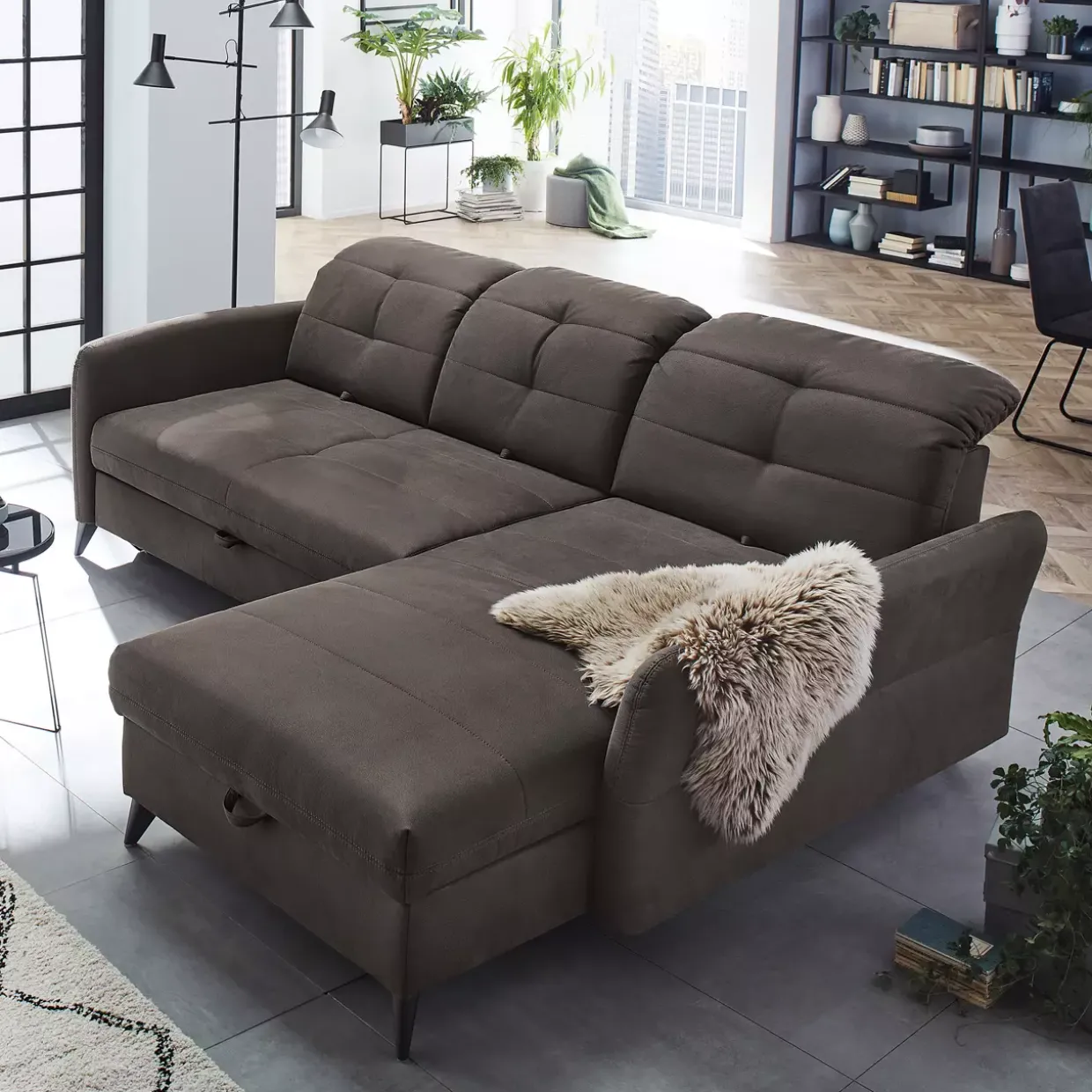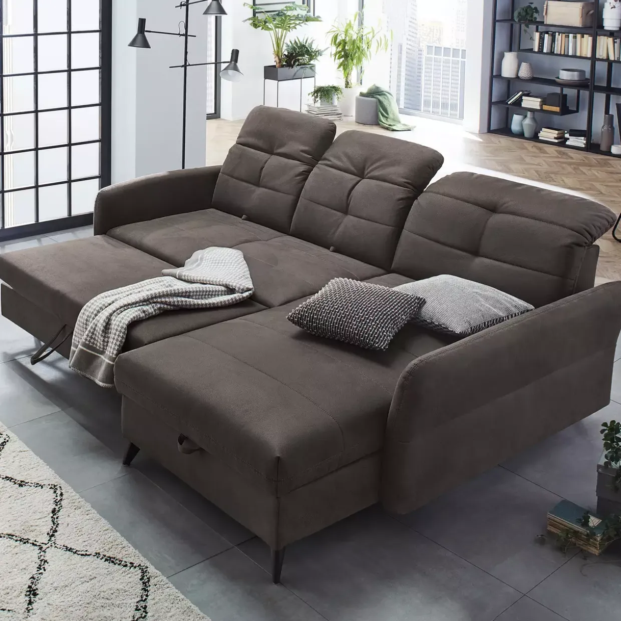 Ein besonderes Highlight ist die Schlaffunktion, die sich mühelos bis auf eine Breite von 126 cm ausziehen lässt. Damit bietet sie nicht nur Sitzkomfort, sondern auch eine praktische Schlafmöglichkeit für Gäste. Der Bettkasten sorgt zudem für zusätzlichen Stauraum, ideal für Bettwäsche oder Kissen.