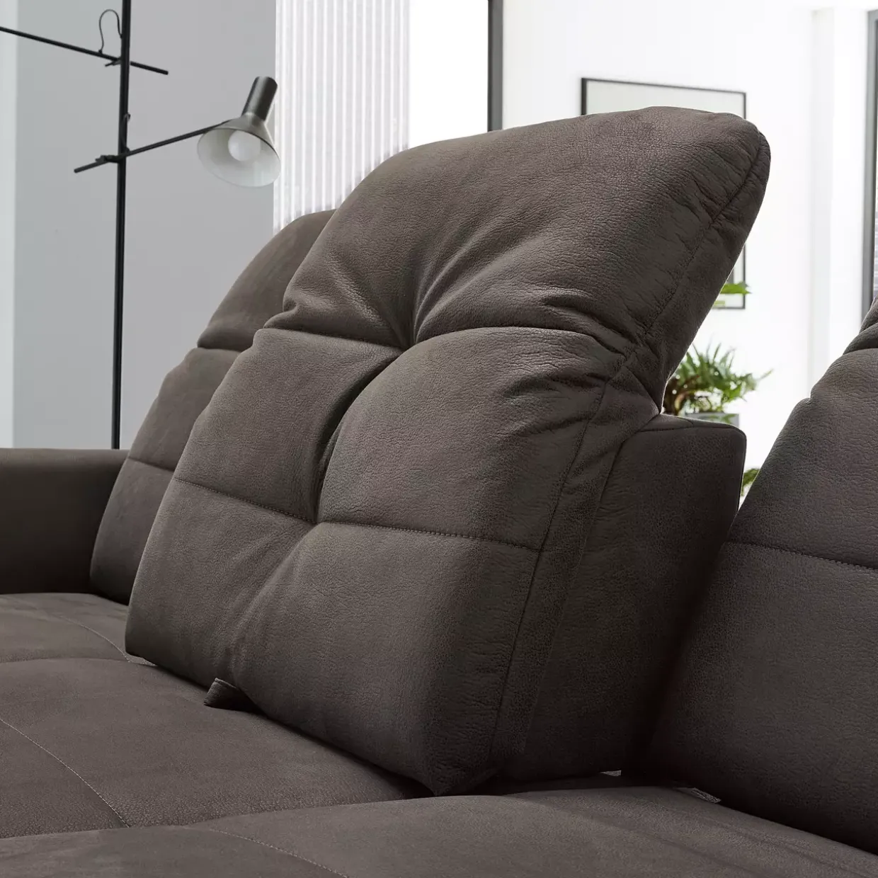Die verstellbaren Kopfstützen der Lana Wohnlandschaft laden dazu ein, den Komfort ganz individuell zu gestalten. Dieses moderne Möbelstück vereint Funktionalität und Stil in beeindruckender Weise. Die Kombination aus Stoff und Metall verleiht der Wohnlandschaft eine elegante Optik, die durch die Uni-Musterung vollendet wird.