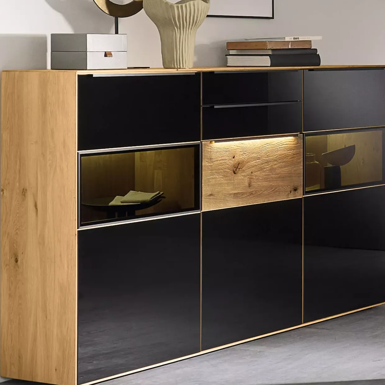 Die fast flächenbündig eingebaute Profilleuchte der Gavardo LED Einbauleuchte sorgt für eine optimale, lineare Ausleuchtung der Rückwand. Diese innovative Beleuchtungslösung ist wie gemacht für moderne Wohnräume, in denen Funktionalität und Ästhetik aufeinandertreffen. Durch das minimalistische Design und die zeitlose weiße Farbgebung fügt sie sich nahtlos in jedes Ambiente ein und setzt dabei stilvolle Akzente.Gefertigt aus hochwertigem Kunststoff, vereint die Gavardo LED Einbauleuchte Langlebigkeit und Leichtigkeit. Die Materialwahl sorgt nicht nur für eine robuste Konstruktion, sondern auch für ein elegantes Erscheinungsbild, das dem modernen Stil gerecht wird. Besonders hervorzuheben ist die passgenaue Integration in Highboards dieses Modells, was eine harmonische Gesamtwirkung sicherstellt.Die durchdachte Konstruktion ermöglicht eine gleichmäßige und angenehme Beleuchtung, die ideal für die Akzentuierung von Dekorationsgegenständen oder die Schaffung einer angenehmen Raumstimmung geeignet ist. Mit der Gavardo LED Einbauleuchte setzen Sie auf eine Kombination aus zeitgemäßem Design und praktischer Funktionalität, die sowohl in Wohnräumen als auch in Büros ihre Wirkung entfaltet. So wird jeder Raum in ein harmonisches Licht getaucht, das die Sinne anspricht und für eine einladende Atmosphäre sorgt.