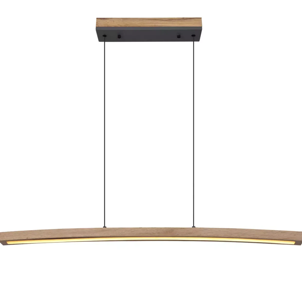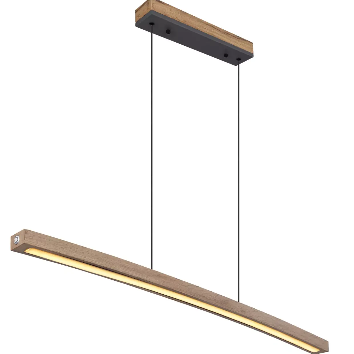 Hängeleuchte Metall Graphit, MDF holzoptik dunkel, Kunststoff opal, Kabel PVC Schwarz, Touch Ein/Aus, Touchdimmer, Memoryfunktion, Höhe kürzbar, Höhenverstellbar, LxBxH: 1000x70x1200mm, inkl. LED 18W 230V, 2050lm Source, 1100lm Output, 3000KDie moderne Hängeleuchte Doro beeindruckt durch ihr stilvolles Design in elegantem Graphit. Perfekt für das ganze Jahr geeignet, vereint diese Pendelleuchte Funktionalität mit ästhetischem Anspruch. Aus einer Kombination von Holzwerkstoff, Kunststoff und Metall gefertigt, fügt sie sich harmonisch in verschiedene Einrichtungsstile ein.Mit einer Helligkeit von bis zu 1100 Lumen sorgt die Doro für ein angenehm warmweißes Licht, das anheimelnde Atmosphäre in jeden Raum bringt. Besonders praktisch ist der integrierte Touchdimmer, der es Ihnen ermöglicht, die Lichtintensität nach Belieben zu regulieren. Dank der Memory-Funktion merkt sich die Leuchte sogar Ihre bevorzugten Einstellungen.Die Doro wird inklusive Leuchtmittel geliefert und arbeitet mit energieeffizienten LEDs, die eine Farbtemperatur von 3000 Kelvin bieten. Die Lichtfarbe bleibt somit stets angenehm und augenschonend. Eine weitere nützliche Eigenschaft ist die Höhenverstellbarkeit, die eine individuelle Anpassung an Ihre Bedürfnisse ermöglicht.Besonders hervorzuheben ist die einfache Pflege: Ein trockenes Tuch genügt, um die Oberfläche der Leuchte zu reinigen. Diese Pendelleuchte ist nicht nur ein optisches Highlight, sondern überzeugt auch durch ihre vielseitigen Funktionen und die hohe Verarbeitungsqualität. Ideal für alle, die Wert auf Stil und Funktion legen.