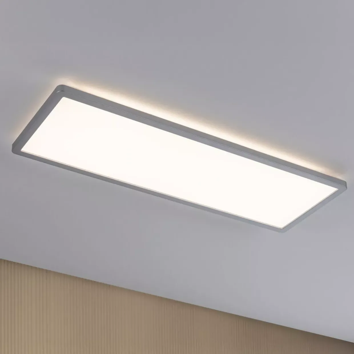 Die rechteckige Form des LED Panels Atria Shine verleiht jedem Raum eine moderne Eleganz. Mit einer warmweißen Lichtfarbe von 3000 Kelvin sorgt es für eine angenehme und gleichmäßige Raumausleuchtung. Dank der flexiblen 3-Stufen-Dim-Funktion kann das Licht einfach angepasst werden, indem der Lichtschalter mehrfach betätigt wird. Der Clou: Die Memory-Funktion speichert die zuletzt gewählte Einstellung bis zum nächsten Einschalten.
