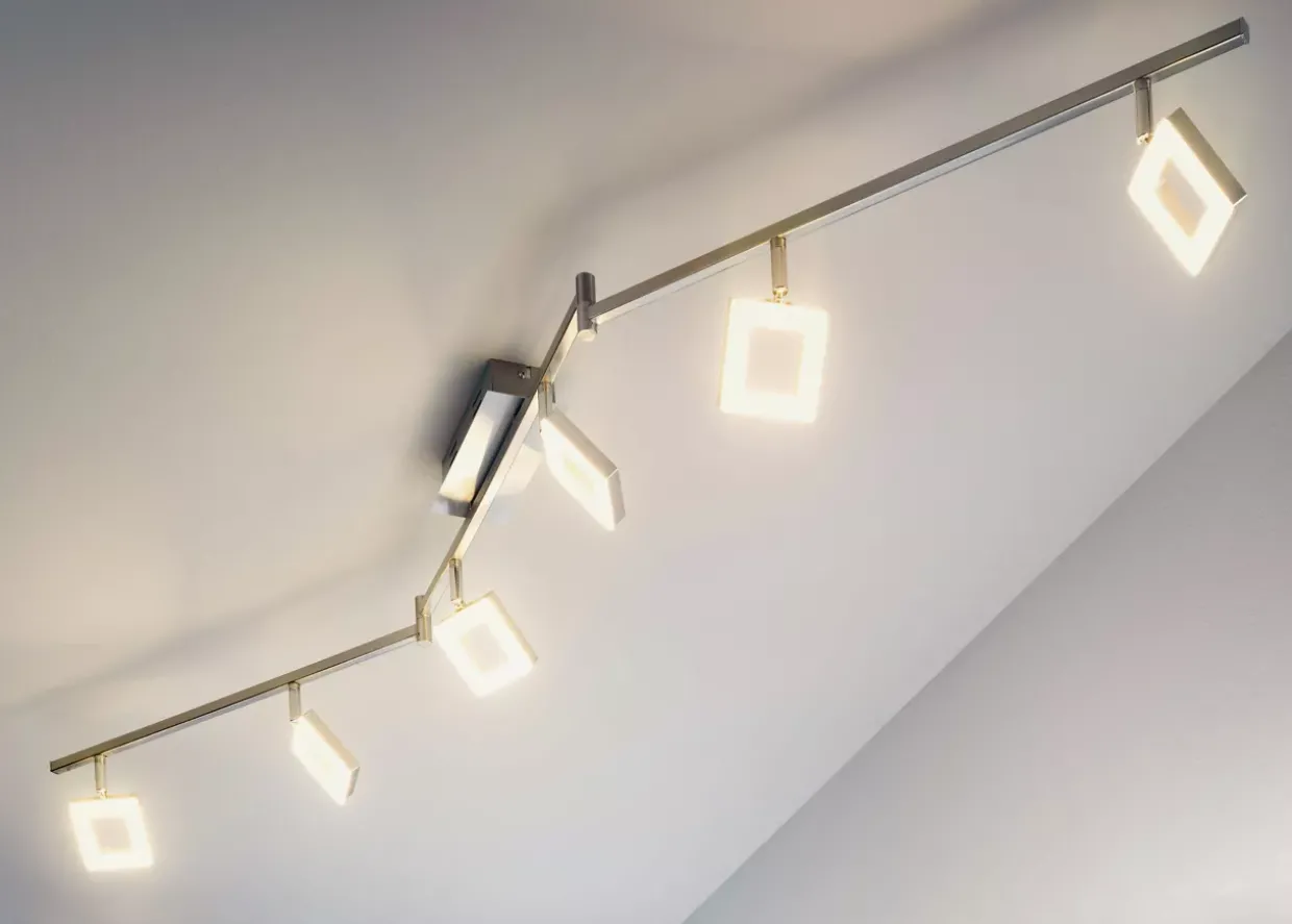 Eleganz trifft auf Funktionalität: Der LED-Spot Real II in modernem Stil bereichert jeden Raum mit seiner silbernen Farbe und zeitgemäßen Optik. Die verstellbaren Spotlights ermöglichen eine individuelle Ausleuchtung und schaffen je nach Bedarf eine warme Atmosphäre mit einer Farbtemperatur von 3000 Kelvin. Dank der flexiblen 3-Stufen-Dimmerfunktion lässt sich die Lichtintensität mühelos anpassen, um das perfekte Ambiente zu schaffen.