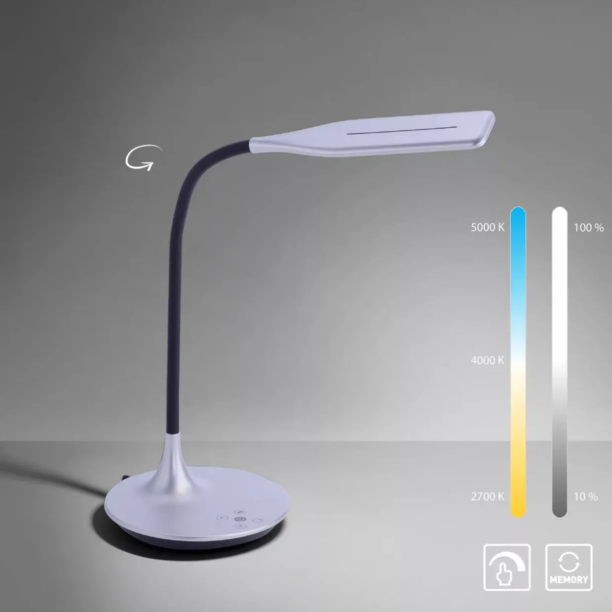Mit einer Helligkeit von bis zu 600 Lumen sorgt die Rafael Tischleuchte für optimale Lichtverhältnisse, sei es beim Lesen oder Arbeiten. Die kaltweiße Lichtfarbe ist ideal, um Konzentration und Wachsamkeit zu fördern. Dank der Dimmfunktion lässt sich die Lichtintensität individuell anpassen, wobei der integrierte Touchdimmer eine besonders einfache Handhabung gewährleistet.