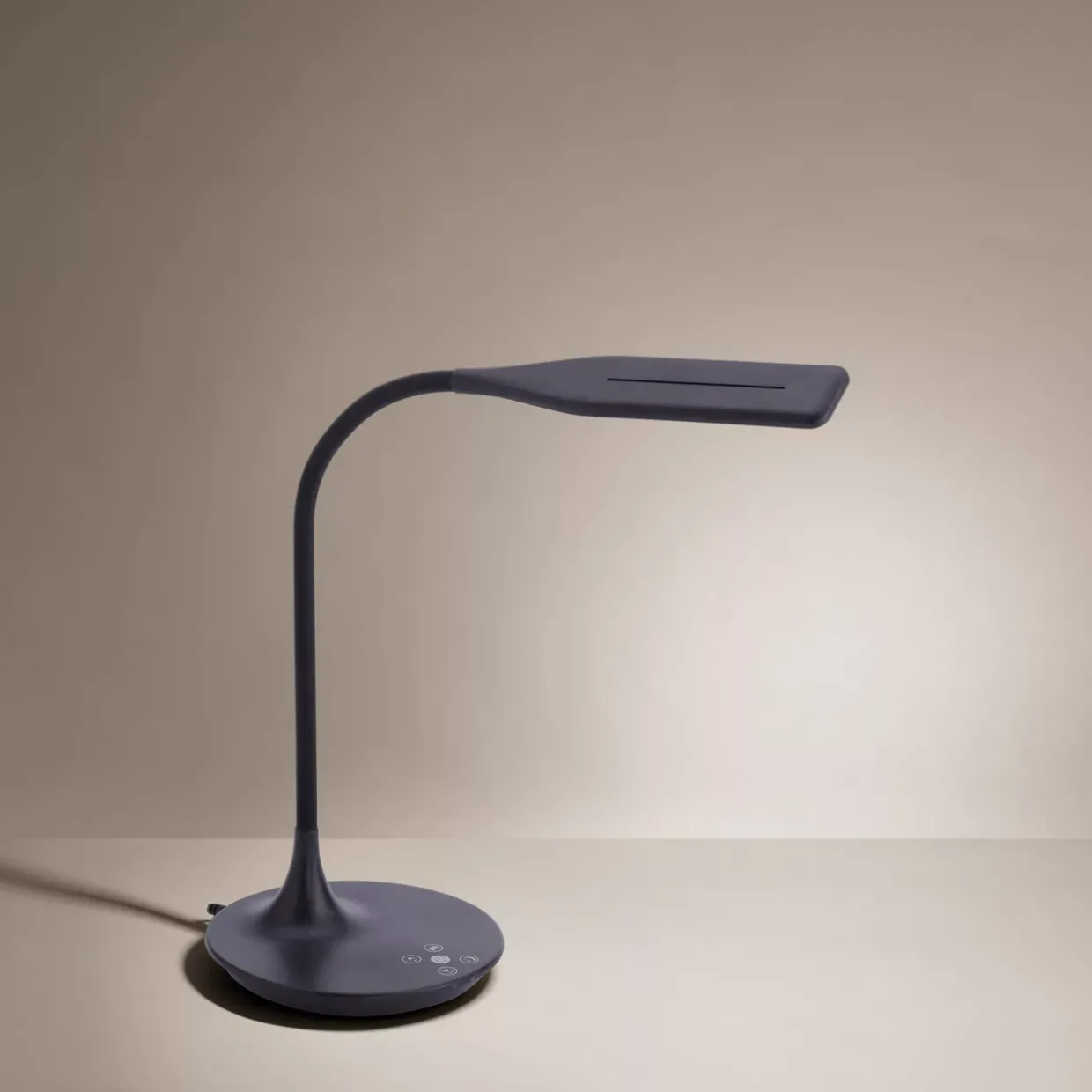Gefertigt aus hochwertigem Kunststoff, kombiniert die Tischleuchte Robustheit mit einem leichten Design. Die kaltweiße Lichtfarbe der LED-Leuchtmittel, die im Lieferumfang enthalten sind, bietet eine klare und effiziente Beleuchtungslösung. Diese Leuchtmittelart verspricht zudem eine lange Lebensdauer und Energieeffizienz.