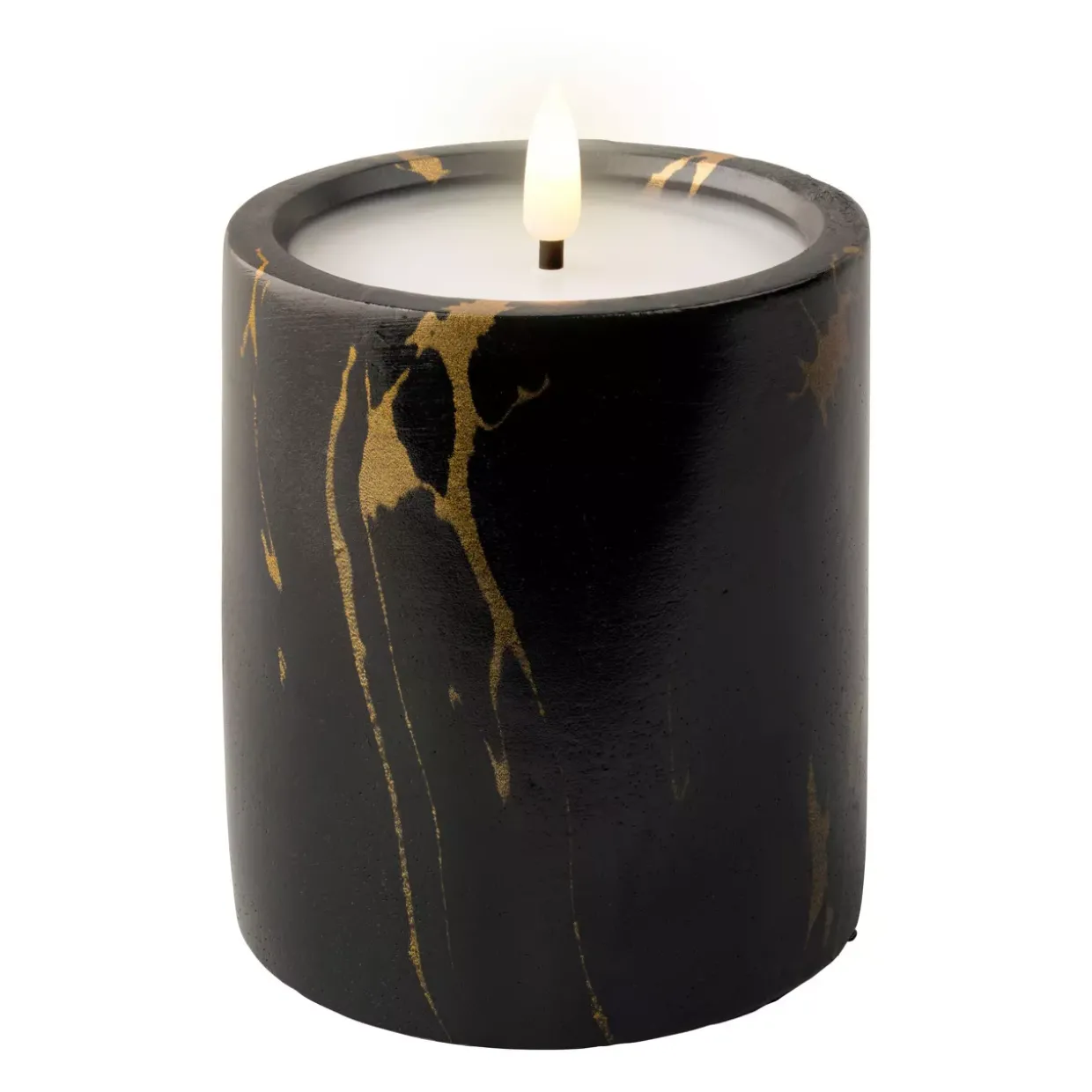 Eine harmonische Kombination aus Schwarz und warmem Weiß zeichnet diese LED-Kerze aus. Die moderne Gestaltung fügt sich nahtlos in jedes stilvolle Interieur ein. Besonders zur Weihnachtszeit verleiht die Kerze aus hochwertigem Stein Ihrem Zuhause eine festliche Atmosphäre.