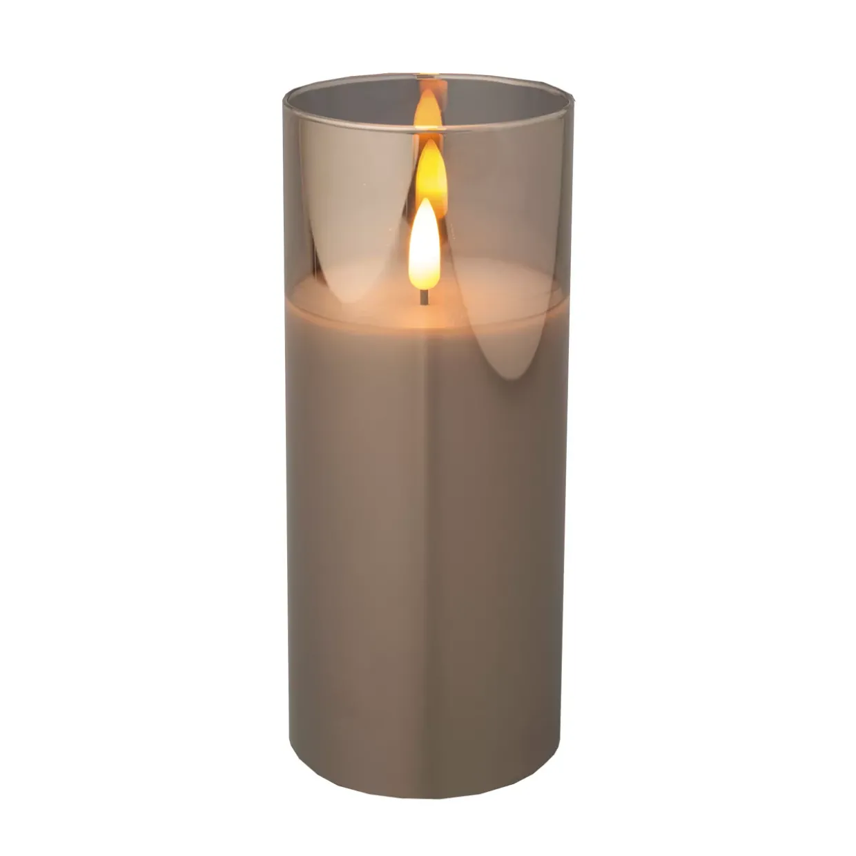 LED Kerze Wachs Glas BO Indoor, LED Kerze Wachs Glas BO Indoor, rauchgrau/warmweiss, dia7.50-H17.50cm-1L, glass