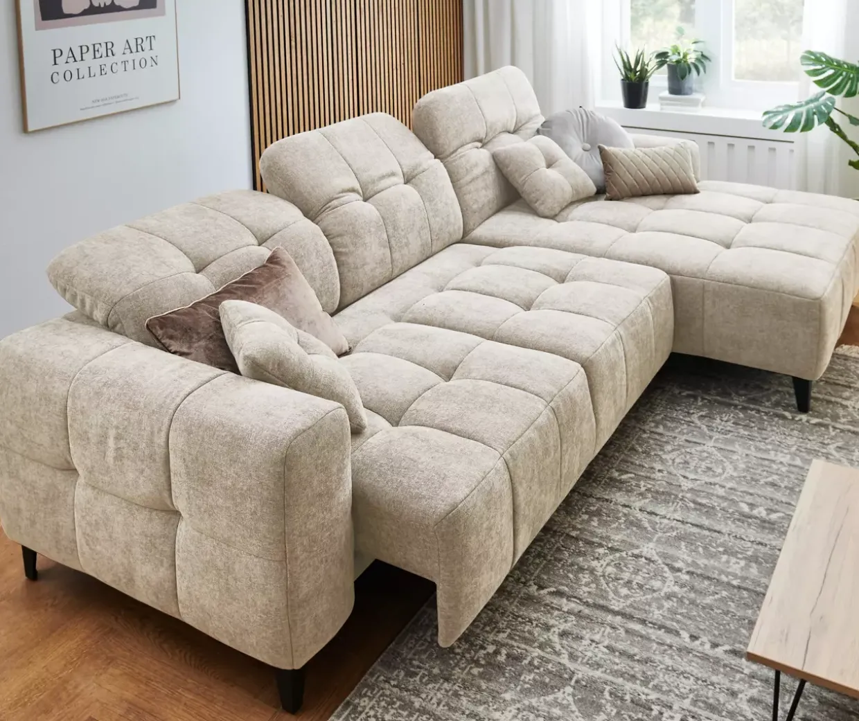 Die Polstergarnitur ist nicht nur ästhetisch ansprechend, sondern überzeugt auch durch ihre funktionalen Merkmale. Beispielsweise ermöglicht die elektrische Sitztiefenverstellung eine individuelle Anpassung, sodass Sie stets die ideale Position finden können.
