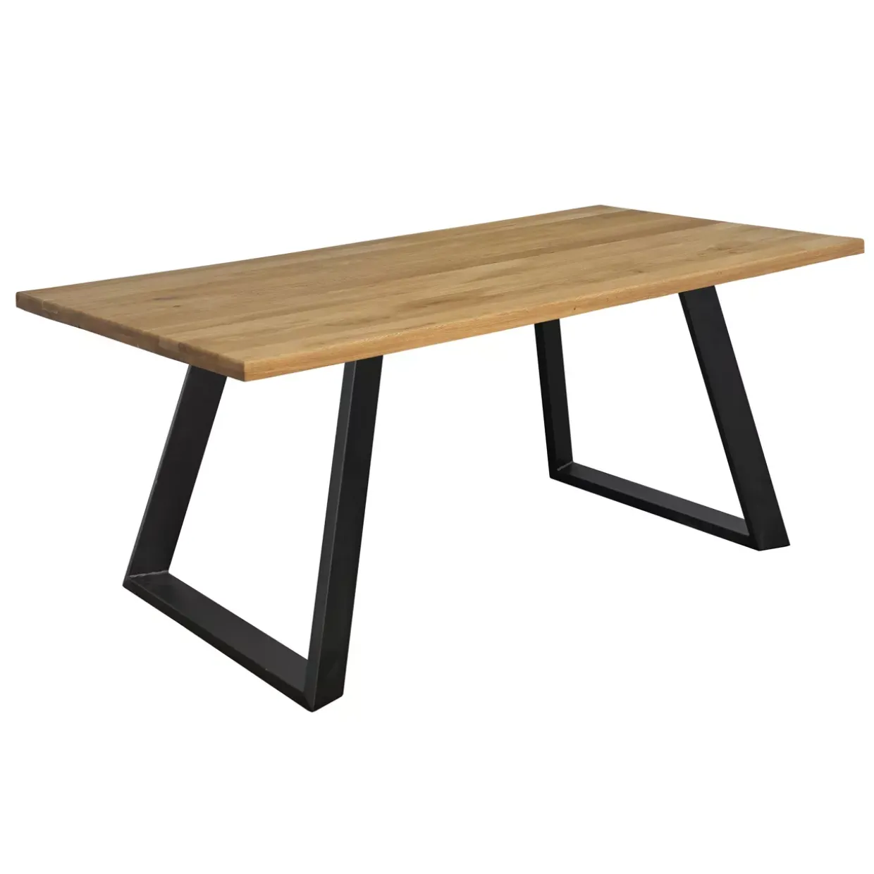 Die Tischplatte aus Eiche keilgezinkt besticht durch ihre natürliche Schönheit und verleiht jedem Essbereich eine warme, einladende Atmosphäre. Der Esstisch im konventionellen Stil kombiniert gekonnt die robuste Eleganz von Eichenholz mit der Stabilität eines Metallgestells. Eine gerade Kante der Tischplatte sorgt für einen zeitlosen Look und fügt sich harmonisch in verschiedenste Einrichtungsstile ein.
