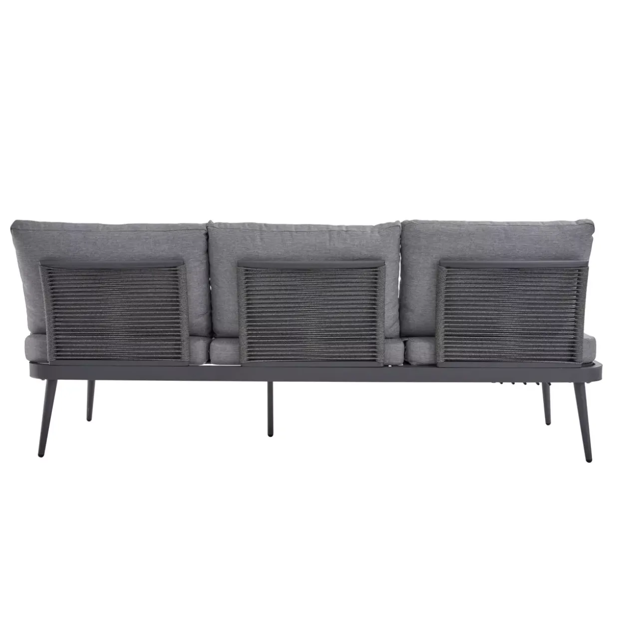 Ein vielseitiges Materialensemble aus Kunststoff, Metall und Textil sorgt dafür, dass das Gartensofa nicht nur optisch überzeugt, sondern auch funktional. Diese Materialien machen das Sofa pflegeleicht und witterungsbeständig, was für eine lange Lebensdauer garantiert.