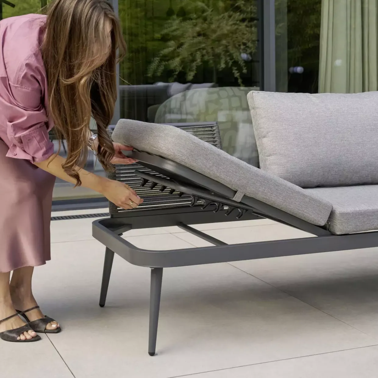 rechts (grau); Aluminium-Lounge mit Liegefunktion-Rechte Seite