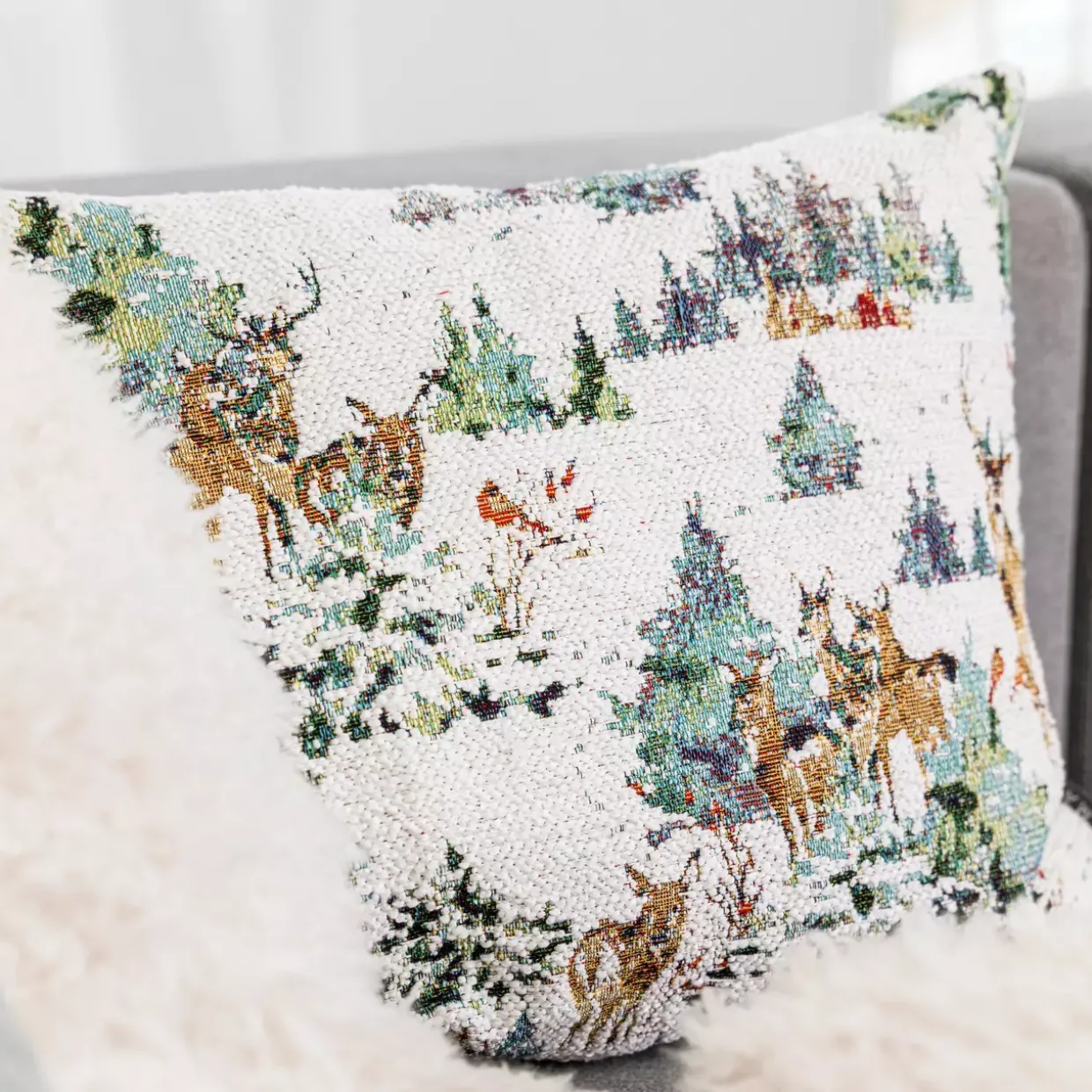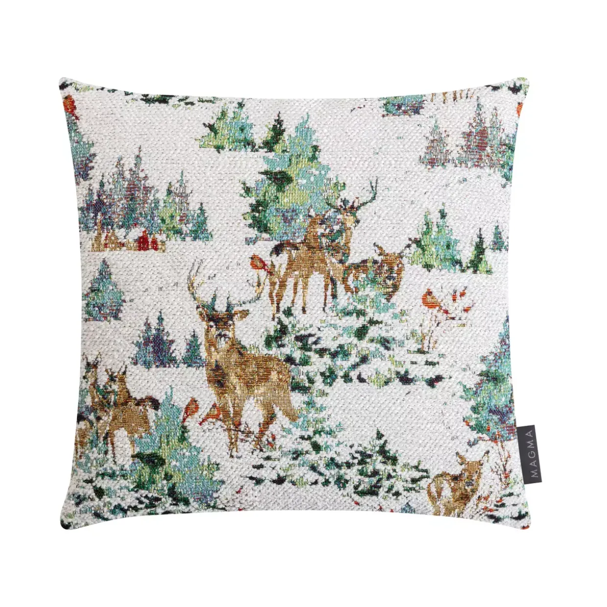 Die Kissenhülle in elfenbeinfarbener Eleganz präsentiert sich in klassisch quadratischer Form. Das Modell LANDSCAPE vereint zeitlose Konvention mit der Raffinesse von Jaquard-Gewebe. Diese Kissenhülle ist nicht nur ein dekoratives Element, sondern auch ein Ausdruck von Stil und Qualität. Ihr florales und tierisches Muster verleiht jedem Raum eine lebendige und dennoch subtile Note.