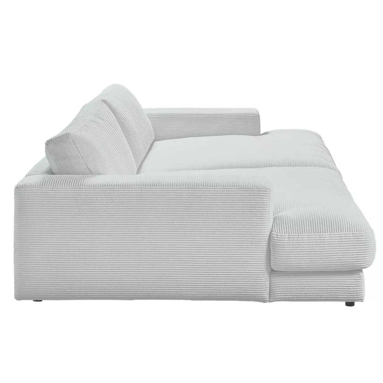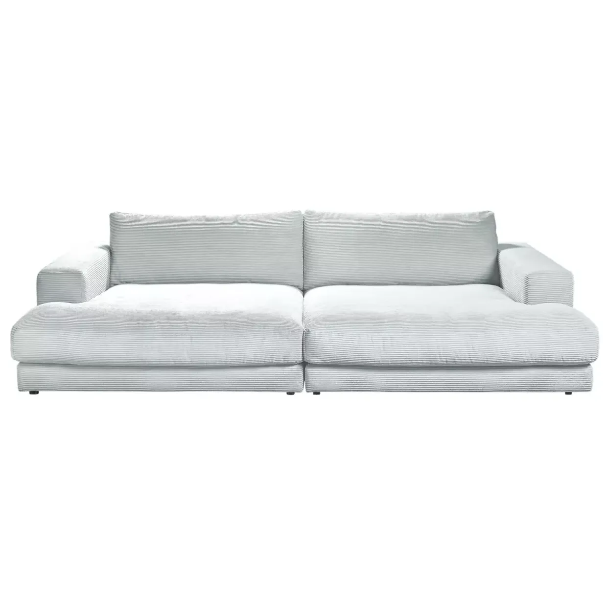 Ein Hauch von Modernität trifft auf Komfort bei diesem Megasofa. Der Stil dieses Möbels ist modern, und die Farbe in einem eleganten Ton verleiht jedem Raum eine raffinierte Note. Die Gleiter-Fußform sorgt für Stabilität und sanfte Beweglichkeit, während der hochwertige Cordstoff ein angenehmes Gefühl auf der Haut bietet. Durch die besonders legere Polsterung wird das Sitzen zu einem luxuriösen Erlebnis. Die losen Sitz- und Rückenkissen sind mit PUR-Schaum gefüllt, was für eine optimale Unterstützung und Formbeständigkeit sorgt. Das Sofa ist mehr als nur ein Sitzmöbel; es ist ein Ort der Entspannung. Ein Echtbezug am Rücken unterstreicht die Qualität und Langlebigkeit des Sofas.Mit Armlehnen ausgestattet, bietet dieses Megasofa zusätzlichen Komfort und ermöglicht es Ihnen, sich vollständig zu entspannen. Das einfarbige Design trägt zu einer ruhigen und harmonischen Atmosphäre bei und lässt sich leicht in verschiedene Einrichtungsstile integrieren. Egal, ob Sie es sich mit einem Buch gemütlich machen oder einen Filmabend mit Freunden planen, dieses Sofa wird zu einem unverzichtbaren Bestandteil Ihres Wohnbereichs. Genießen Sie die perfekte Kombination aus Stil, Komfort und Funktionalität.