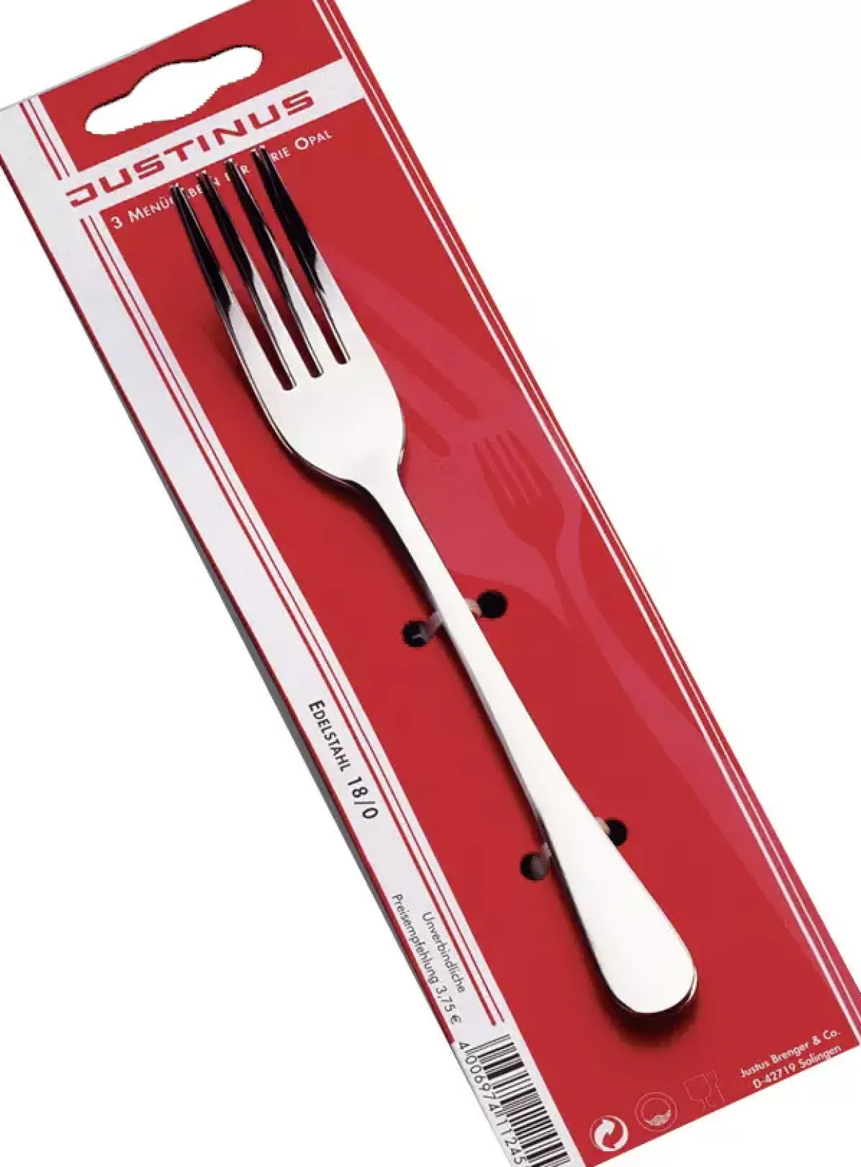 Diese 3 Menügabeln der Serie Opal zeichnen sich durch ein besonders günstiges Preis-Leistungsverhältnis aus. Die „Drei“ sind hochglanzpoliert, aus Edelstahl 18/0 und selbstverständlich spülmaschinenfest.;Material: Edelstahl 18/0;Anzahl: 3 Besteckteile auf Karte