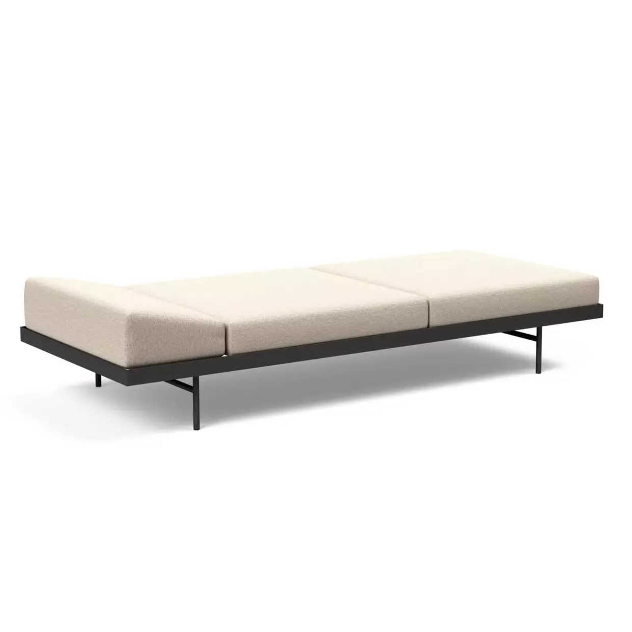 Das Klappsofa der Serie Daybeds Puri kombiniert zeitloses Design mit hoher Funktionalität und erstklassigem Komfort. Das Sofa ist mit dem Stoff Argus in Naturweiß bezogen, der eine helle, freundliche Ausstrahlung verleiht und gleichzeitig pflegeleicht ist. Die Bezüge sind komplett abnehmbar und waschbar, sodass Sie stets für eine frische Optik sorgen können. Der Sitzkomfort wird durch die Rückenkissen aus einem hochwertigen Kaltschaum/Fiberfill-Mix optimiert, der eine angenehme Stütze bietet und gleichzeitig weich bleibt. Die Sitzkissen sind lose und mit einem Schaumstoffbezug ausgestattet, was für eine flexible Handhabung sorgt. Besonders praktisch ist der integrierte Tisch aus Eiche natur, lackiert. Dieser fügt sich perfekt in das Gesamtbild des Sofas ein und bietet zusätzlichen Stauraum oder eine Ablagefläche, ideal für Bücher, Getränke oder andere Accessoires. Mit einer Sitz- bzw. Liegehöhe von 34 cm bietet das Sofa eine komfortable Höhe für das Sitzen und Entspannen. Das Gestell aus Metall in mattschwarz verleiht dem Sofa eine moderne, elegante Note und sorgt für eine stabile Grundlage.