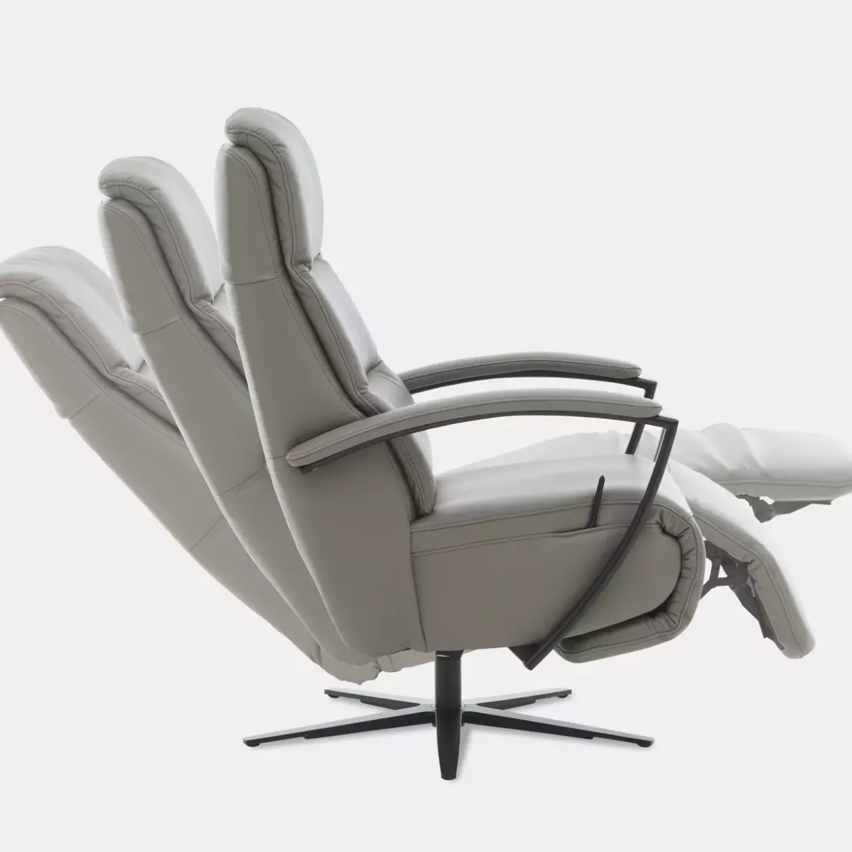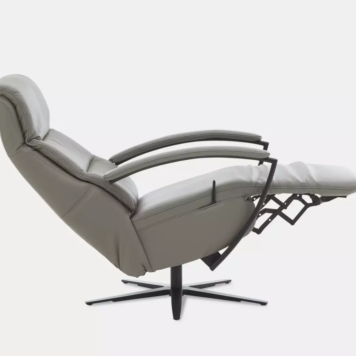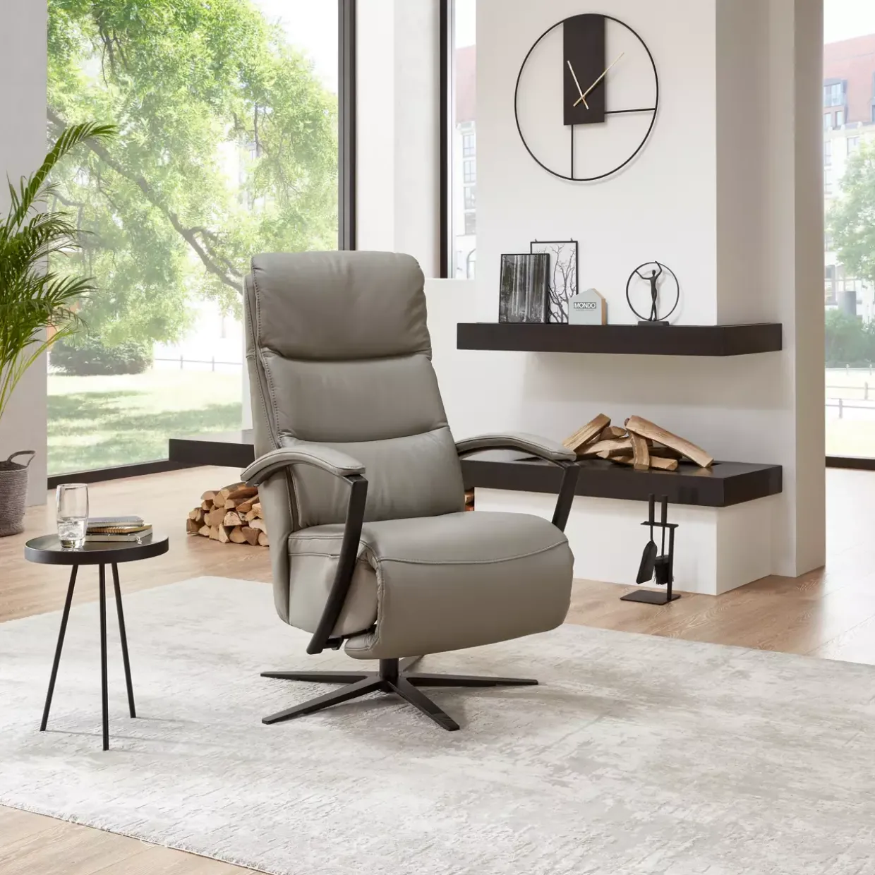 Mit manueller Kopfteilverstellung, Beinauflage und Rückenverstellung passt sich der Sessel flexibel Ihren Bedürfnissen an. Die bodenfreien Metallarmlehnen, schwarz pulverbeschichtet, runden das stilvolle Erscheinungsbild ab und verleihen ihm eine besondere Eleganz. Der Bezug aus echtem Leder ist nicht nur ein optisches Highlight, sondern gewährleistet auch Langlebigkeit und eine angenehme Haptik.