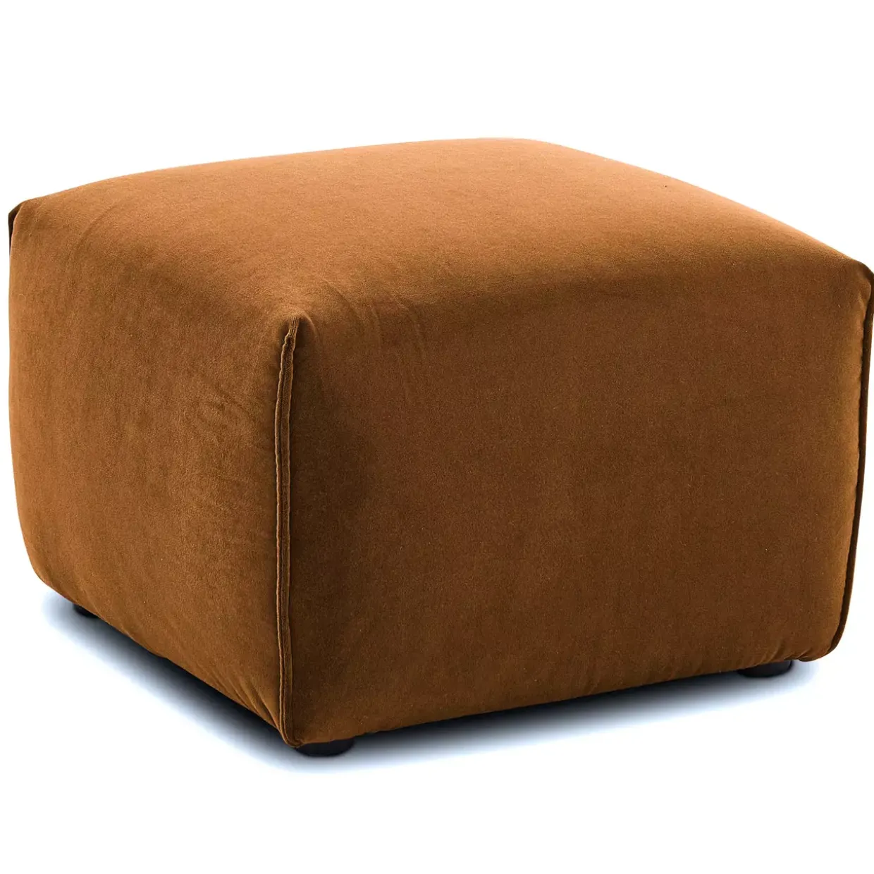 Der Hocker besticht durch seine quadratische Form, die sich nahtlos in moderne Wohnräume einfügt. Die Farbe Velluti Whisky verleiht dem Ensemble eine warme, einladende Aura. Dank der Gleiter-Fußform lässt sich der Hocker mühelos verschieben, ohne den Boden zu beschädigen.