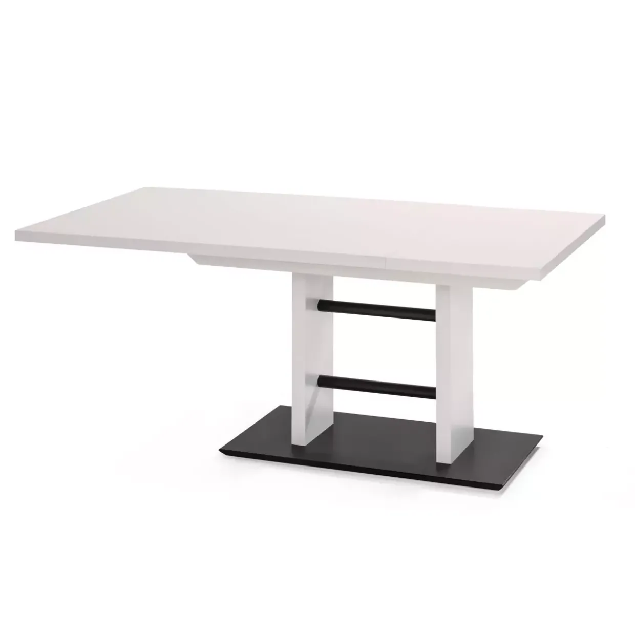 Die moderne Eleganz des Ledus Plus MONDO zieht mit seiner Kombination aus hochwertigen Materialien alle Blicke auf sich. Der Kontrast zwischen der Bodenplatte und den Rohren in schwarz Struktur und der matt weißen Nachbildung verleiht diesem Möbelstück eine besondere Raffinesse. Funktionalität trifft auf Stil: Die Schiebe- und Ansteckplatte mit einer Erweiterung von 48 cm bietet Flexibilität im Alltag und Platz für spontane Gäste.