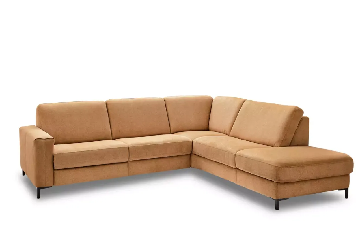 Nahtbild Kappnaht Ton in Ton verleiht der Maestra Polstergarnitur einen subtilen, aber stilvollen Akzent. Diese moderne Polstergarnitur, erhältlich in den eleganten Farben Kurkuma und Schwarz, fügt sich nahtlos in unterschiedlichste Wohnkonzepte ein. Ein harmonisches Zusammenspiel von Metall und Stoff sorgt für eine ansprechende Optik und bietet gleichzeitig eine robuste und komfortable Sitzgelegenheit.