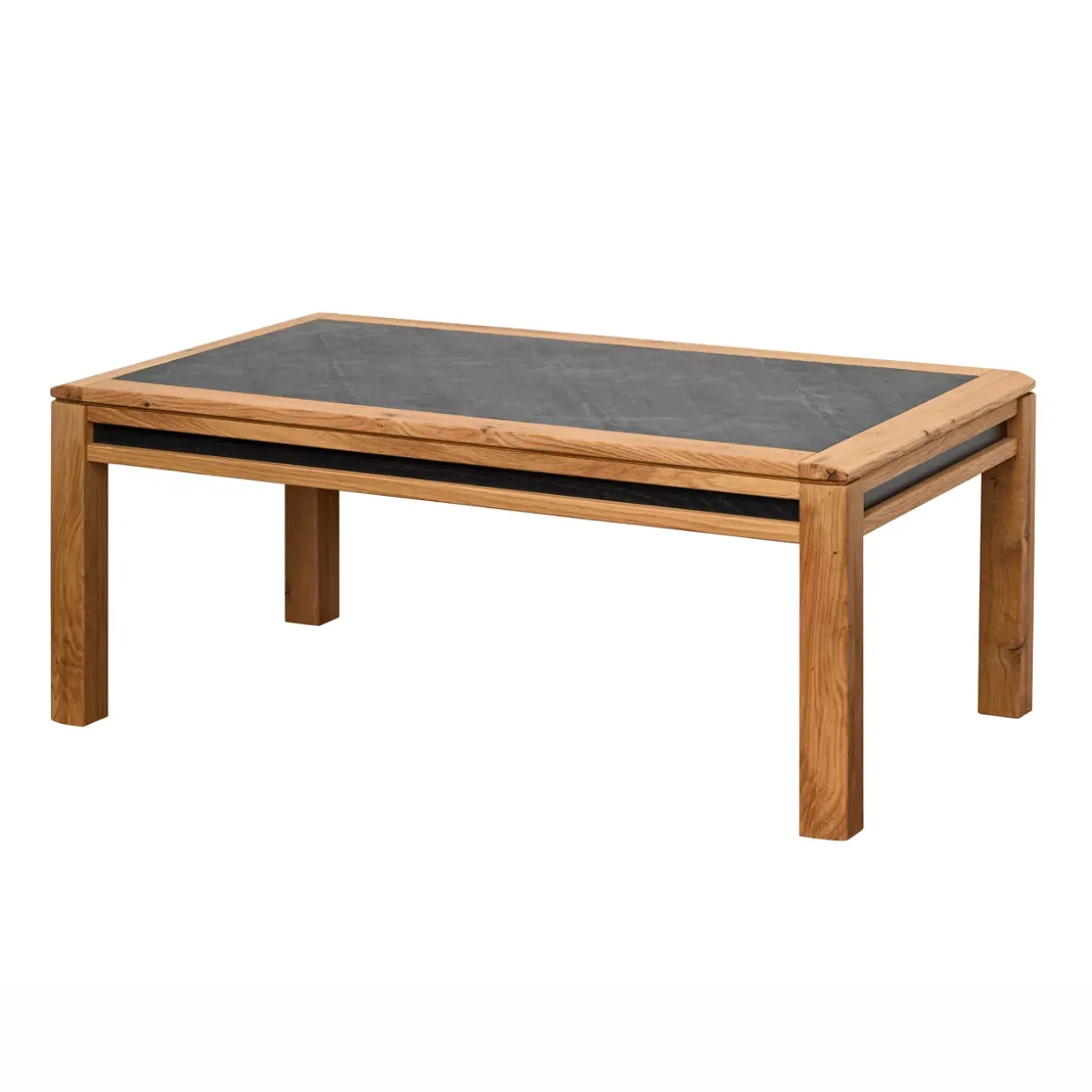 Eleganz und Natürlichkeit vereinen sich in der Oberplatte mit einer Schiefereinlage, die dem Danora Plus Mondo Natur Tisch eine exklusive Note verleiht. Die Kombination aus massiver Asteiche und Schiefer erzeugt ein harmonisches Gesamtbild, das sowohl in traditionellen als auch in modernen Einrichtungen überzeugt.